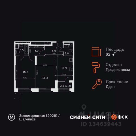 Стоимость указана с учетом скидки 5%, ваша выгода составит 2 174 949 рублей! Полная стоимость квартиры без скидки 43 498 980 рублей. В продаже 2-комнатная квартира в готовом клубном доме бизнес-класса "Интонация". Квартира с высокими потолками, просторной кухней и постирочной. Условия покупки: - выгода до 2,2 млн - семейная ипотека - рассрочка на 6 месяцев - Trade-in "Интонация" состоит из двух 21-этажных корпусов и приватной внутренней территории. На стилобате расположен ландшафтный сад с авторским благоустройством. В продаже финальный пул квартир бизнес-класса с мастер-спальнями, возможностью установки камина, окнами в ванных комнатах, увеличенной высотой потолков, а также просторными террасами и лоджиями. "Интонация" расположена в экологичном районе Щукино на северо-западе Москвы. Вокруг Щукинский лесопарк, Всехсвятская роща и парк "Покровское-Стрешнево". Одно из главных преимуществ дома - сочетание близости к природе и развитой инфраструктуры: - до метро "Щукинская" - 10 минут пешком - до центра - 10 минут на автомобиле Рядом детские сады и школы, включая знаменитую Курчатовскую. Недалеко расположены корпуса Финансового университета и других ведущих вузов. В пешей доступности - поликлиники, супермаркеты, фитнес-центры и спортивные секции. Собственная инфраструктура "Интонации" - ресторан итальянской кухни, студия фитнеса и пилатеса, супермаркеты, один из которых круглосуточный, салон красоты, барбершоп и химчистка. Приватная территория "Интонации" разделена на две тематические зоны: внутренний двор с детскими и спортивными площадками и ландшафтный сад на террасе. Главным акцентом стал парящий водоем с подвижной гладью. Двухуровневый паркинг рассчитан на 186 автомобилей и 27 гостевых мест. Есть возможность зарядки электромобилей, удобный подъезд для грузового транспорта, келлеры для хранения личных вещей и помещение для велосипедов. 2-комнатная квартира в готовой новостройке в округе СЗАО в Москве.