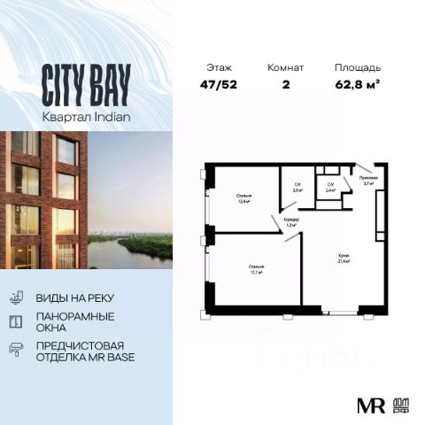 Прямая продажа от застройщика. Продаётся 2-к квартира общей площадью 64.40 м² с предчистовой отделкой в ЖК City Вау на 47-м этаже 52 этажного дома. Корпус сдан. Концепция жилого комплекса City Вау - настоящий город в городе с отлично развитой инфраструктурой и собственной благоустроенной набережной. На территории жилого комплекса расположено пять кварталов - Atlantic, Pacific, Indian, North, Cliff. Жилой квартал City Вау отличается оригинальной концепцией и выделяется среди других проектов такими характеристиками как: - Архитектура, - Виды из окон, - Природное окружение, вызывая гордость у жителей и восхищение у прохожих. Вся жизнь района Покровское-Стрешнево строится вокруг водных объектов: - Пойма реки Сходни с уникальной экосистемой, - Речка Химка и Химкинское водохранилище, - Москва-река, - Канал имени Москвы. Кругом вода, и местные с удовольствием этим пользуются. А сразу за рекой - центр водного спорта в Строгино с вейк-парком и яхт-клубами. Помимо воды, здесь очень много зелени: - Рядом Сходненский ковш памятник природы, естественный амфитеатр глубиной 40 метров; - Парк при усадьбе Братцево с фруктовым садом; - Дубовая роща "Маяк", - Алешкинский лес; - Лесопарк Покровское-Стрешнево с пляжами и бобрами. Главные транспортные артерии района: - Волоколамское шоссе, - Таганско-Краснопресненская линия метро и МЦД-2. Всего за 20 минут можно добраться до центра на машине или метро, а МЦД связывает ЖК City Вау с северными, восточными и юго-восточными районами. Компания MR Group предлагает своим клиентам специальные условия приобретения квартир в рамках программ ипотечного кредитования от банков-партнеров. Купить 2-комнатную квартиру с отделкой рядом с метро Мякинино.
