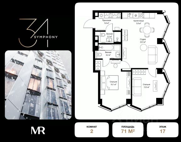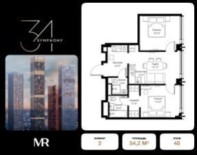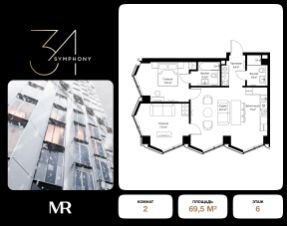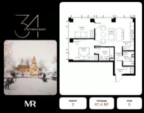 Дом сдан. Ключи в день покупки! В продаже 2-комнатная квартира площадью 59.50 м² с предчистовой отделкой на 38 этаже 43 этажного дома в корпусе Сильвер. ЖК Симфония 34 - концептуально новый жилой комплекс премиум-класса с подземной парковкой, состоит из четырех башен высотой 36 - 54 этажа. Квартиры сдаются с базовой (предчистовой) отделкой MR BASE или дизайнерской чистовой отделкой MR READY. Высота потолков 3 - 6 метров, окна высотой до 2,6 м. Более 100 кладовых в подземной части ЖК и более 500 на этажах. Безопасность - Система контроля входа на территорию комплекса, биометрия - Система автоматического водяного пожаротушения и противопожарного водопровода, система пожарной вентиляции - Доступ на парковку при помощи системы распознавания автомобильных номеров, карточка для контроля доступа резидентов - Система видеонаблюдения - Круглосуточная связь через приложение, телефон, голосовые сообщения с охраной, консьержем, call-центр. Расположение Пешком - 6 минут до метро "Дмитровская" - 15 минут до Тимирязевского парка На машине - 5 минут до Савеловского вокзала и Аэроэкспресса в Шереметьево - 10 минут до Москва-Сити и Садового кольца Благоустройство - 70% территории отведены под зеленые насаждения и ландшафтный дизайн - Приватный Японский сад - Детские площадки с зонированием по возрасту - Clubhouse для резидентов - Wellness & SPA - Зона для пикника, зона с гамаками - Центральное лобби, ресторан, коммерческие помещения - Дополнительный вход/выход на территорию комплекса Окружение - В 10 минутах от Symphony 34 находится дизайн-завод Flacon, где регулярно проходят культурно-образовательные и развлекательные мероприятия - Тимирязевский парк расположен в 850 м. Площадь парка 232 га - Рядом расположен парк "Дубки", площадью 16,5 га. - В 15 минутах расположен Хлебозавод 9. Здесь находятся шоурумы брендов, кафе разных кухонь мира, образовательные проекты и площадки для мероприятиКомпания MR предлагает своим клиентам специальные условия приобретения квартир в рамках программ ипотечного кредитования от банков-партнеров. Продается 2-комнатная квартира в сданном доме рядом с метро Тимирязевская.