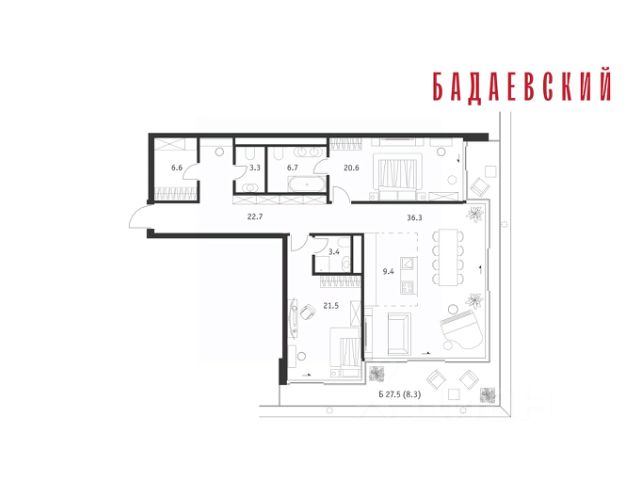 - 147 резиденций, площадью от 63 до 263 (с возможностью объединения)