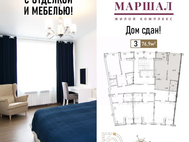 Продаётся 2-комнатная квартира в сданном доме (Маршала Рыбалко, 2К3), срок сдачи: IV-кв. 2011, общей площадью 105.09 кв.м., на 9 этаже. МФК "Маршал" построен по авторскому проекту архитектора с мировым именем и получил награду TREFI "Лучший проект бизнес-класса в Москве". Готовая квартира в элитном МФК "Маршал" с премиальной отделкой "под ключ" (экологичное напольное покрытие - инженерная доска и керамогранит, высококачественные системы кондиционирования и сантехническое оборудование премиум класса Villeroy & Boch, Grohe), выполненной европейскими специалистами по эксклюзивным дизайн-проектам, подчеркнет высокий статус владельца. В квартире выполнен новый ремонт и НИКТО НЕ ЖИЛ с момента ввода в эксплуатацию. Квартиры 3-го корп. продаются с полной отделкой, что обеспечивает комфорт проживания в доме сразу после получения ключей, т.к. исключает длительный период ремонта квартир - у вас и соседей, а также сохранит презентабельные входные группы в идеальном состоянии. МФК "Маршал" построен по авторскому проекту архитектора с мировым именем и получил награду TREFI "Лучший проект бизнес-класса в Москве". Это самодостаточный город в городе на просторной - 6,3 га - охраняемой территории, большую часть которой занимают зеленые зоны с деревьями, есть сквер с аллеями, цветниками и фонтаном с разноцветной подсветкой в вечернее время, детские городки, спортивные площадки для подвижных игр, воркаута и теннисный корт с мягким покрытием. Из окон от известного производителя открывается прекрасный панорамный вид на столицу с современными элитными жилыми комплексами с интересной и изысканной архитектурой или просторный двор-патио МФК "Маршал". Вход в подъезды 3-го корпуса на уровне земли. Вам будет комфортно заходить с детской коляской, самокатом, велосипедом или с чемоданом, возвращаясь из путешествия. Презентабельные входные группы, испанские премиальные лифты ORONA. В квартирах установлены видеодомофоны премиум-класса итальянской компании Bpt. К вашим услугам богатая собственная инфраструктура МФК "Маршал": детсады (в т. ч. английский), творческие и спортивные студии, студия раннего плавания, здание фитнес-центра с бассейном, минимаркет AB Daily, подземный паркинг на 1200 м/м, химчистка, салоны красоты, кафе, рестораны, БЦ класса B+, где можно арендовать/купить офис и работать рядом с домом, и др. У комплекса уникальная транспортная доступность: рядом ТПУ "Панфиловская", Северо-Западная хорда, соединяющая несколько районов столицы, в 5 мин. ходьбы - ст. м. Октябрьское Поле. В нескольких мин. езды - Ленинградский пр-т, по которому можно быстро доехать до ТТК или центра Москвы, и Ленинградское ш., ведущее к аэропорту Шереметьево. Рядом с комплексом расположена Церковь Иконы Божией Матери, в 10 мин. ходьбы - Большая Всехсвятская Роща, где можно увлекательно проводить время всей семьей! В развитой внешней инфраструктуре респектабельного района Щукино есть всё, что нужно для комфортной и интересной жизни. Купить 2-комнатную квартиру с отделкой станция Панфиловская (МЦК).