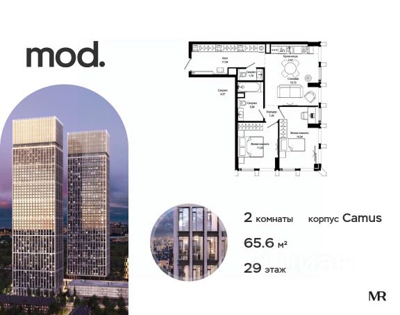 Прямая продажа от застройщика. Продается 2-комнатная квартира общей площадью 64.45 м² с предчистовой отделкой в ЖК премиум-класса Mod на 5-м этаже 44 этажного дома. Mod - жилой комплекс премиум-класса в историческом районе Москвы Марьина Роща. Пятый корпус станет частью единого высотного ансамбля, который поднимается над столицей и очерчивает новый горизонт города. Расположение корпуса Mod.C отличается тем, что виды на юго-запад Москвы не ограничены существующей застройкой. Почти все главные доминанты столицы — как на ладони: от сталинских высоток до небоскрёбов делового центра. Любоваться достопримечательностями будет вдвойне приятнее через панорамные окна. Закрытая территория жилого комплекса, продуманное благоустройство, эксплуатируемые кровли стилобата, образовательный центр с детским садом создают приватное пространство для тихой семейной жизни, а городская площадь с фонтанами, ресторан, супермаркет, коммерческая инфраструктура на первых этажах привносят созвучную с ритмом города динамику. Преимущества проекта: - В шаговой доступности новый деловой кластер Москвы - Выразительная авторская архитектура - Единственные в Москве фасады башен из натурального камня - Панорамное остекление и высота потолков до 4,8 м - Квартиры и апартаменты с отделкой MR Base - Многоуровневое благоустройство с зонированием на закрытой территории - Многофункциональный образовательный детский центр с детским садом - Двухуровневый подземный паркинг Транспортная доступность: - 5 минут пешком до станции метро "Марьина Роща" - 3 минуты до ТТК - 15 минут до Цветного бульвара Компания MR предлагает своим клиентам специальные условия приобретения квартир в рамках программ ипотечного кредитования от банков-партнеров. Продам 2-комнатную квартиру с отделкой в готовой новостройке в округе СВАО в Москве.