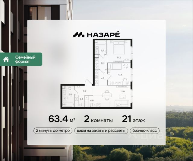 Продается 2-комнатная квартира в ЖК "НАЗАРЕ'" Общая площадь - 70.40 Тип дома - монолитный Этаж - 5 Год сдачи - 2028 Предлагается квартира площадью 70.40 кв. м в новом современном квартале на востоке Москвы, прямо у станций метро и МЦК "Бульвар Рокоссовского". Квартира располагается в корпусе 5 на 5 этаже комплекса бизнес-класса "НАЗАРЕ'". Стоимость указана с учетом скидки 20%, ваша выгода составит 6 940 032 рублей! Полная стоимость квартиры без скидки 34 700 160 рублей. Великолепная транспортная доступность: • 2 минуты ходьбы до метро и МЦК "Бульвар Рокоссовского"; • 3 минуты на авто - удобный выезд на СВХ (МСД); • 10 минут на авто до национального парка "Лосиный остров"; • 10 минут на авто до "Измайловского парка"; • 15 минут до авто до парка "Сокольники"; • 15 минут занимает выезд на ТТК, • 18 минут на авто до Садового кольца. Индивидуальная архитектура в современном стиле: • шесть башен переменной высотности от 24 до 43 этажей, в том числе одна высотная 143-метровая доминанта, которая станет достопримечательностью востока Москвы; • авторы архитектурной концепции - знаменитое бюро СПИЧ (среди их работ - башня "Федерация", новое здание Третьяковской галереи, реконструкция БСА "Лужники" и др.); • торгово-развлекательный комплекс с фитнес-центром, детской игровой комнатой и открытыми террасами прямо возле квартала; • дизайнерские лобби от бюро ABOVE ARCHITECTURE с панорамными окнами, интерьерами в теплой цветовой гамме и мягкой зоной ожидания располагаются в каждой башне; • корпуса расположены так, чтобы из окон открывались потрясающие виды на закаты и рассветы, зеленые панорамы или огни мегаполиса; Особенности расположения "НАЗАРЕ'" находится максимально близко к метро, и в то же время проект вписан в уже существующую инфраструктуру зеленого столичного района Богородское. Это обеспечивает быстрый доступ ко всем нужным объектам инфраструктуры (детские сады, школы, медцентры, магазины, салоны красоты, фитнес-клубы, футбольные поля, спортивные школы), а также к живописным зеленым зонам - национальному парку "Лосиный остров", парку "Сокольники", Черкизовскому детскому парку, Измайловскому лесопарку с усадьбой Измайлово. Собственная инфраструктура и благоустройство Шесть башен квартала будут объединены цокольным этажом, в который можно попасть как с улицы, так и со стороны лобби. Здесь разместятся необходимые для комфортной повседневной жизни кофейни, супермаркет, рестораны, магазины и многое другое. В комплексе предусмотрен вместительный двухуровневый подземный паркинг с келлерами для хранения сезонных вещей. Во дворе комплекса "НАЗАРЕ'" будут места как для спокойного отдыха и работы, так и для игр и спорта. Здесь организованы игровые площадки для детей всех возврастов, места для стритбола и тенниса, а также зона с природным ландшафтом и коворкинг с экологичной деревянной мебелью. 2-комнатная квартира в ипотеку в новостройке в районе Богородское в Москве.