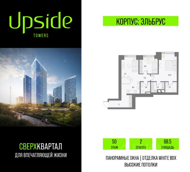 Продаётся 2-комнатная квартира площадью 58.13 кв.м на 3 этаже 46 этажного корпуса Монте Бьянко в квартале небоскребов "Апсайд Тауэрс", в квартире предчистовая отделка, c видом на Звездный бульвар, Ольгинский храм, корпус Эверест. Номер квартиры Г0306. Апсайд Тауэрс - технологичный квартал строится в динамично развивающемся Бутырском районе, в 3 мин. от метро, в 5 мин. от ТТК. На территории 7 га возводится 5 высотных башен от 19 до 58 этажей, названных в честь главных вершин земли. Квартиры с панорамными окнами в пол, высокими потолками и современными инженерными решениями. Благоустроенная зеленая территория включает: приватные дворы, природный комплекс, прогулочный бульвар, ландшафтный парк 2,5 га с сенсорным садом и многофункциональными игровыми и спортивными площадками. В корпусе откроется смотровая площадка для резидентов с панорамными видами на город, парки, Останкинскую башню, ВДНХ, Ботанический сад и Москву-Сити. На первых этажах корпуса Монте Бьянко разместятся: фитнес студия, салон красоты, центр превентивной медицины, образовательные классы, книжный магазин, аптека, фермерская лавка, а также келлеры для хранения сезонных вещей. В приватном закрытом дворе разместятся разнообразные площадки для прогулок, игр и отдыха. Визитной карточкой двора станет уникальная биометрическая игровая пещера со сказочными тоннелями, горками и космическими "мягкими" камнями с неизведанных планет. Планету Земля дети смогут исследовать в павильоне круглый год: объемная крыша укроет от солнца и дождя. Игровая пещера будет реализована в стиле "эмоциональная архитектура". Большое внимание в проекте уделяется созданию социальной инфраструктуры. В стилобатной части, между корпусами "Атлас" и "Олимп" разместится уникальное пространство закрытый клуб для жителей квартала Апсайд Клуб площадью 2 000 кв. м. Здесь разместятся: каминный зал с роялем, многофункциональная детская зона c двухуровневым игровым оборудованием для малышей и дошкольников, плей-рум для подростков, домашний кинотеатр, коворкинг, переговорные и лектории. Покупая квартиру даже самого минимального размера в Апсайд Тауэрс, вы получаете в пользование 2 000 м² бесплатных общественных пространств. В рамках проекта строится государственная школа и детский сад, разместится более 15 000 кв.м. коммерческой инфраструктуры. Насыщенная социальная инфраструктура формирует множество сценариев для жизни на территории квартала. В Апсайд Тауэрс применяются лучшие технологии и практики, чтобы обеспечить высшее качество жизни: Воздух, не уступающий по качеству горному, обеспечит приточно-вытяжная вентиляция. Пятиступенчатая очистка воды с сохранением полезных минералов. Центральное кондиционирование. Внутрипольные конвекторы с естественной конвекцией. Современные системы безопасности и мониторинга микроклимата. Высокоскоростной интернет на всей территории, в квартирах и паркинге. Все места в подземном паркинге оборудованы зарядками для электрокаров. Бутырский район непрерывно развивается и готовится ст Продается 2-комнатная квартира в ипотеку в новостройке в районе Бутырский в Москве.