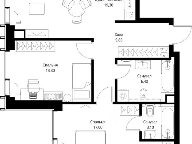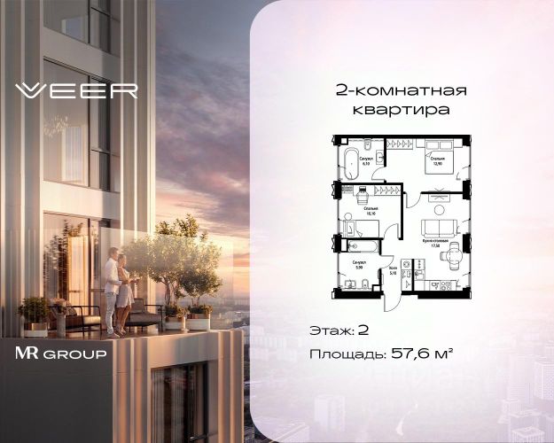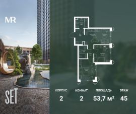 Прямая продажа от застройщика. Продаётся 2-комнатная квартира общей площадью 53.90 м² с предчистовой отделкой в ЖК VEER на 9-м этаже 22 этажного дома. Жилой комплекс бизнес-класса VEER от компании MR — это футуристичный мультиквартал, расположенный в престижной локации на западе Москвы. Благодаря переменной высоте башен — двух 22-этажных, 46-этажной и двух 59-этажных — возникает динамичность в силуэте комплекса, а его яркий образ вносит разноплановость в архитектурный пейзаж района. Расположение и транспортная доступность: • VEER удобно расположен в непосредственной близости от Кутузовского проспекта, обеспечивая быстрый доступ к центральным районам Москвы • Комплекс находится непосредственно напротив самого большого природного заказника в Москве - парка "Долина реки Сетунь", а за семь минут можно доехать до памятника садово-паркового искусства, Троекуровского леса. • Всего в 15 минутах - центр города, самая престижная бизнес-школа управления России "Сколково", дом творчества "Переделкино". • 18 минут пешком до м. "Давыдково" • Открытие новых станций метро в шаговой доступности в будущем Инфраструктура: Разнообразить свой день резиденты VEER смогут также проводя больше времени на свежем воздухе. Двор разделен на 4 зоны разных эмоций и действий, которые пересечены и соединены веерными прогулочными маршрутами: • Спортивная площадка устроена в глубине "Кленовой рощи" • В "Чайном домике" будет создан навес с утеплением для отдыха в любую погоду • Площадки для детей воплотятся в "Волшебный лес" с цветами, зеркалами и световым дизайном • "Центральная площадь" устроена у водного оазиса живописного пруда. Компания MR предлагает своим клиентам специальные условия приобретения квартир в рамках программ ипотечного кредитования от банков-партнеров.
