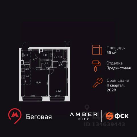 ТОЛЬКО 4 ДНЯ ДО 10.02 • Дополнительная скидка 10% • Ставка 10% по стандартной ипотеке для всех без наценок • Ставка 3,5% по семейной ипотеке Успейте купить выгодно! Прямая продажа от застройщика! Жилой Комплекс премиум-класса. Продаётся 2-к квартира номер 1296 общей площадью 45.6 кв.м. на 53-м этаже 57 этажного здания. Без отделки. Цена с учётом скидки. Особенности квартиры: - Мастер-зона с санузлом и гардеробной. Всё для вашего комфорта и удобства, включая личный санузел и гардероб. - Просторная спальня, в которой можно разместить большую кровать. - Линейная планировка - максимальная функциональность и удобство. - Увеличенная ширина окна/окон - больше света и визуального простора. - Увеличенная высота окна - больше воздуха и света. - Гостевой санузел - комфорт и удобство для ваших гостей. - Ниша под стиральную машину - удобство и экономия пространства. - Евроформат - просторное и удобное жилье с отличной планировкой. - Гибкая планировка - создайте пространство по своему вкусу. - Место для игры/занятия спортом - идеальное пространство для активных детей. - Линейная кухня - функциональность и практичность в одном решении. - Проходная кухня-гостиная - идеальное пространство для общения и готовки. - Гардеробная - удобство для хранения и организации вещей. - Ниша под шкаф - компактное и удобное место для вещей. Информация о комплексе: Amber City - это не просто квартал. Это место, куда ведут все маршруты, где рождается вдохновение работать и творить, где счастлива семья и жизнь кипит 24/7. Модная архитектура, высокотехнологичные решения и самодостаточная инфраструктура приближают Amber City к лучшим районам Гонконга и Нью-Йорка. Потрясающие виды на Москва-Сити и центр позволяют заряжаться их амбициозностью, не подчиняясь суете. Стремящиеся ввысь небоскребы, благоустроенный парк с зонами отдыха для взрослых и детей, а также многочисленные объекты инфраструктуры возводятся в западной части центра Москвы. Транспортная доступность: Квартал отличается исключительной транспортной доступностью: большая часть значимых мест Москвы находится на расстоянии 15-20 минут. Такое расположение позволит полностью погрузиться в деловую и культурную жизнь столицы и тратить на дорогу только необходимый минимум времени. Общественный транспорт: - Станция метро "Беговая" - 5 минут пешком - Станция "Беговая" (МЦД-1) - 5 минут пешком - Ж/д станция Беговая - 12 минут пешком - Остановка "2-й Хорошёвский проезд" - 3 минуты пешком - Станция метро "Звенигородская" (строящаяся) - 10 минут пешком На автомобиле: - Звенигородское шоссе - 3 минуты - TTK - 5 минут - Хорошёвское шоссе - 9 минут - Садовое кольцо - 12 минут - Красная Пресня - 15 минут - Тверская - 20 минут - Серебряный бор - 8 минут - Строгинский затон - 8 минут - Москва-Сити - 10 минут - Кремль - 20 минут - Аэропорт Шереметьево - 40 минут Внутренняя инфраструктура: Умелая работа над ландшафтом позволила правильно зонировать многоуровневое пространство, общей пло