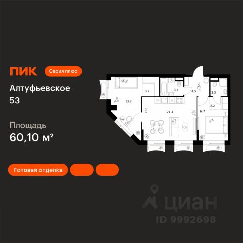 Продаётся 2-комн. квартира площадью 58,1 кв.м на 4 этаже 9 этажного дома (Корпус 1.1, Секция 3) проекта ПИК Алтуфьевское 53. Светлый просторный подъезд на уровне земли, функциональная планировка, большие окна, c отделкой. Проект "Серии плюс" возводится на северо-востоке Москвы. Рядом — удобный выезд на Алтуфьевское шоссе, а оттуда — на ТТК и МКАД, так что до центра Москвы вы доедете на машине примерно за 20 минут. До станции метро "Отрадное" можно доехать на транспорте за 15 минут. За 20 минут получится доехать до станции "Бибирево". Столько же займёт прогулка до станции МЦД "Дегунино". Архитектурную концепцию проекта разработало российское бюро M.A.M. Искусная работа с формой зданий позволила проекту воплотить в себе современную элегантность и функциональность. В проекте представлено множество планировок семейного формата: с мастер-спальнями и комнатами, разнесёнными по разным сторонам квартиры, чтобы у каждого было своё личное пространство. Большие семьи также оценят удобные планировки с постирочными и гардеробными. А также уникальные форматы квартир с террасами, балконами и лоджиями. В проект входят монолитные дома, два детских сада и подземный паркинг. На территории будет городская школа. Во дворах мы построим уютные парки с детскими площадками и местами для отдыха. Здесь вы сможете даже смотреть кино и работать — для этого во дворах-парках будет Wi-Fi. Чуть дальше от домов мы разместим спортивные площадки, чтобы шум от них не мешал жителям. В тихих и быстрых лифтах будут усилители связи, чтобы она не прерывалась и жители продолжали говорить по телефону или проверять соцсети даже перемещаясь между этажами. В окружающем районе есть всё для комфортной жизни: детские сады, школы, торговые центры, парки для прогулок, фитнес-клубы и даже бассейн. Артикул 1004205 (Застройщик ООО СЗ "Перспективные решения")