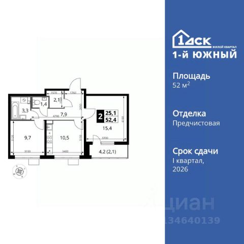 УСПЕЙ ПО СЕМЕЙНОЙ ИПОТЕКЕ БЕЗ НАЦЕНКИ! Квартиры с отделкой от 40 000 рублей в месяц! Прямая продажа от застройщика! Жилой Комплекс класса Комфорт Плюс. Продаётся 2-к квартира номер 493 общей площадью 52.7 кв.м. на 24-м этаже 24 этажного здания. Отделка Whitebox. Цена с учётом скидки. Особенности квартиры: - МЦД-5 в пешей доступности - Квартал с южным садом - Свои 3 детских сада и 2 большие школы - Просторная спальня, в которой можно разместить большую кровать. - Линейная планировка - максимальная функциональность и удобство. - Гостевой санузел - комфорт и удобство для ваших гостей. - Раздельный санузел - больше удобства для всех членов семьи. - Увеличенная высота потолков - ощущение простора и легкости. - Просторная мягкая зона - комфорт и уют для отдыха всей семьи. - Возможность добавить спальное место - дополнительный комфорт для гостей. - Гардеробная - удобство для хранения и организации вещей. - Просторная лоджия - идеальное место для уютных вечеров. Квартира с предчистовой отделкой (White box). Вам не придется заниматься черновыми и трудоёмкими работы, а чистовую отделку и дизайн - сделайте на свой вкус. Информация о комплексе: Одно из преимуществ проектов 1- ДСК большие застекленные лоджии. Другое преимущество честный евро-формат. Во всем проекте предусмотрена система Умный дом. В состав устанавливаемого пакета устройств входит: WiFi реле для управления группами потребителей, беспроводной кран перекрытия с эл. приводом, беспроводной сенсор протечки, Яндекс Станция Мини. Его расположение можно назвать удачным за счет транспортной доступности и близости к природным объектам. По соседству лес, а в каждом дворе плодовые деревья. Весной квартал окутывает бело-розовое облако: это цветут яблони, груши, сливы. К августу в воздух наполняется ароматом созревших плодов. Зимой среди покрытых инеем деревьев протянулась лыжня. Транспортная доступность: - Общественный транспорт: Действующая ж/д станция Булатниково (в перспективе будущая МДЦ D5) в пешей доступности, всего 10-12 минут. - Личный автотранспорт: Удобный выезд на трассу М4-Дон в сторону Москвы и области 850 м, до МКАД - 1 км Внутренняя инфраструктура: Красивые продуманные подъезды - еще одно преимущество проекта 1-й Южный. Вход в сквозные подъезды есть и с улицы, и со двора. Благодаря сплошному остеклению в них всегда светло и уютно. Подъезды расположены на уровне земли, поэтому и молодым родителям с коляской, и жильцам с ограниченными возможностями вход и выход неудобств не доставят. В помещении предусмотрено место под стойку ресепшен с выводом инженерных сетей. Если жильцы решат на общем собрании, что необходим охранник или консьерж, организовать для них рабочее место можно быстро и с минимальными затратами. В подъездах предусмотрены уборные для детей и взрослых. Колясочные в каждом подъезде позволяют поддерживать порядок и чистоту на этажах. На случай прогулки с четвероногим питомцем в непогоду в подъездах устроены лапомойки. Во дворах и на обще