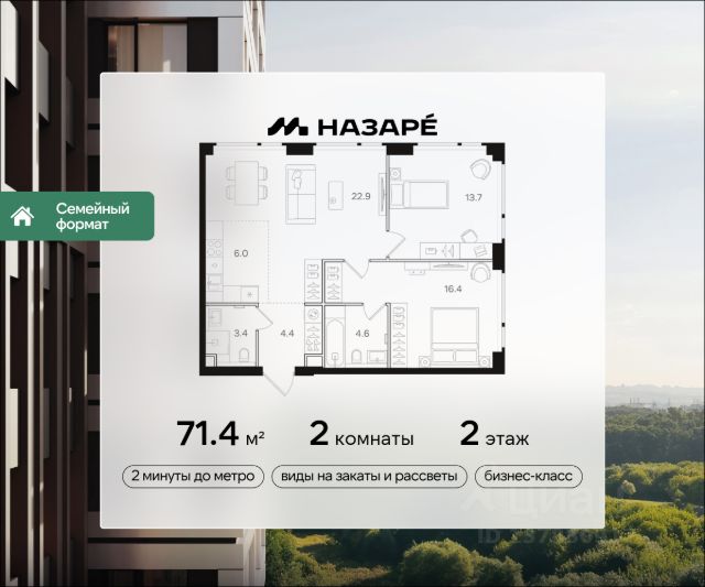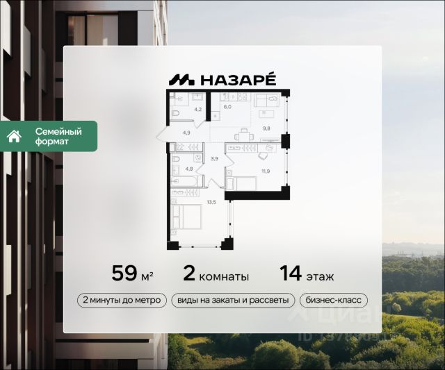 Просторная 2-комнатная квартира для молодой семьи. Общая площадь - 49.9 м2, удобная планировка, кухня-гостиная 18.2 м2. Панорамные виды из окон на две стороны - на национальный парк "Лосиный остров" и благоустроенный внутренний двор. Условия покупки: - Скидка при полной оплате - 10% - Ипотека от 3,5% на весь срок или 0,11% на первый год - Рассрочка без процентов - Trade-in с проживанием на время строительства дома НАЗАР - шесть домов бизнес-класса высотой 24-43 этажа. Проект расположен рядом с национальным парком "Лосиный остров" и парком "Сокольники". В продаже квартиры с мастер-спальнями, кухнями-гостиными, открытыми террасами, просторными кладовыми и ванными с окном. Форматы - от светлых студий 21,6 м2 до семейных 4-комнатных 125,5 м2. Часть лотов - с предчистовой отделкой White Box. Транспортная доступность: - Метро "Бульвар Рокоссовского" и МЦК - 2 мин. пешком - Северо-Восточная хорда - 3 мин. на автомобиле - Третье транспортное кольцо - 15 мин. на автомобиле - Садовое кольцо - 18 мин. на автомобиле Инфраструктура: В составе проекта появится собственный детский сад и торгово-развлекательный центр с акцентом на шопинг и досуг. На первых этажах домов откроются кафе, пекарни, магазины и службы сервиса. В районе Богородское находятся престижные школы, медцентры, магазины и спортивные клубы.