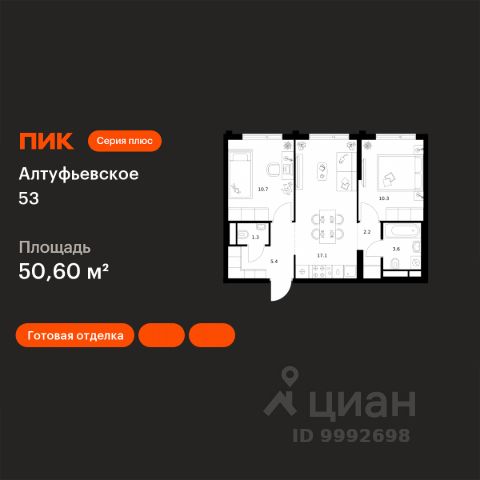 Цена указана с учётом скидки при 100%-й оплате, несубсидированной ипотеке, рассрочке (кроме программы "Рассрочка 0%"). В жилом квартале, расположенном в южной части района Западное Дегунино, продаётся 2-комнатная квартира площадью 51.70 кв.м без отделки. Квартира расположена на 38 этаже 40-этажного корпуса 3 в жилом комплексе комфорт-класса Левел Селигерская (компания Level Group/Левел групп). Отличная транспортная доступность: - 10 мин. пешком до станции метро "Верхние Лихоборы"; - 15 мин. пешком до станции метро "Селигерская"; - 20 мин. пешком до станции МЦД-3 "Моссельмаш"; - 11 мин. на авто до МКАД; - 13 мин. на авто до ТТК; - 16 мин. на авто до Садового кольца. Расположение Район отличается богатой социальной инфраструктурой: школы, детские сады, поликлиники, магазины, фитнес-клубы, торговые центры - всё близко к дому. Рядом с Левел Селигерская расположено 5 парковых зон. В 3 минутах от дома расположен перспективный сквер-парк. В 10 минутах пешком находится парк им. Святослава Фёдорова, в 13 минутах на велосипеде - парк "Ангарские пруды". В 7-11 минутах на автомобиле - два крупных природных объекта: Тимирязевский парк и Главный ботанический сад Российской академии наук. Благоустройство Внутренние дворы жилого комплекса огорожены от машин, а их функциональное наполнение отличается в зависимости от очереди строительства. На территории 2-й очереди жителей ждут уютные навесы с качелями, павильон-читальня, волейбольная площадка, беседки, а также детские и спортивные площадки. Технологии и инженерия Для входа на территорию комплекса предусмотрен единый ключ доступа. Все общественные зоны оснащены камерами видеонаблюдения, по заявке собственнику предоставляется возможность просмотра изображения отдельных видеокамер на его мобильном устройстве. При въезде в паркинг функционирует система распознавания госномеров. Кроме того, для комфорта жителей создано мобильное приложение, с помощью которого можно удаленно контролировать доступ на придомовую и жилую территории. Другие преимущества жилого комплекса - Высокая освещённость квартир: в большинстве из них не менее трёх окон; - Супермаркет, магазины, кафе, пекарни и многое другое на первых этажах домов; - Частный детский сад; - Стильные дизайнерские лобби с высокими потолками до 4,3 м. и окнами в пол, для питомцев предусмотрена лапомойка; - 30+ планировочных решений: от компактных студий до просторных семейных квартир; - С каждого этажа дома на лифте можно спуститься в подземный отапливаемый паркинг."