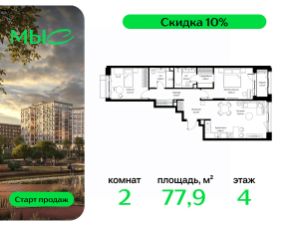 Прямая продажа от застройщика. Продаётся 2-комнатная квартира общей площадью 78.86 м² без отделки в премиальном жилом комплексе "МЫС" на 2-м этаже 12 этажного дома. Квартира расположена в корпусе "Волга". Проект МЫС — это, прежде всего, идеальное место для семей. В рамках проекта построят государственную школу, два детских сада и дворец спорта площадью 20 000 м2 с термальным комплексом, выплывным бассейном, фитнес-залом, теннисными, сквош и падел кортами и секциями для детей. На территории площадью, сравнимой с тремя парками Зарядье, появятся кафе и рестораны, пруд с набережной, спортивные и детские площадки, скейт-парк, лыжные и веломаршруты. Расположение: - 2 минуты до скоростной трассы М1 и Минского шоссе; - 10 минут до МКАД; - 15 минут до МЦД Лесной Городок - 20 минут до делового центра "Москва-Сити"; - 28 минут до аэропорта "Внуково". Благоустройство: - велосипедные и лыжные маршруты; - собственная набережная и парк; - лаунж-зоны в окружении природы; - беседки у очага; - дворец спорта площадью 20 000 м²; - термальный комплекс с тремя бассейнами; - 4 теннисных и падел-корта; - 6 сквош-кортов; - многофункциональный спортзал; - скейт-парк; - просторная площадь для прогулок с фонтаном; - детский Клуб с творческими секциями; - гастро-доминанта; - кафе у пруда, рестораны, ритейл. Окружение - соседство с лесным фондом; - школа на 1250 мест и 2 детских сада на 350 и 255 мест; - Дубковский и Подушкинский леса, парк "Рассказовка", Мещерский парк. Действуют специальные условия при 100% оплате, подробности уточняйте у менеджера в офисе продаж.
