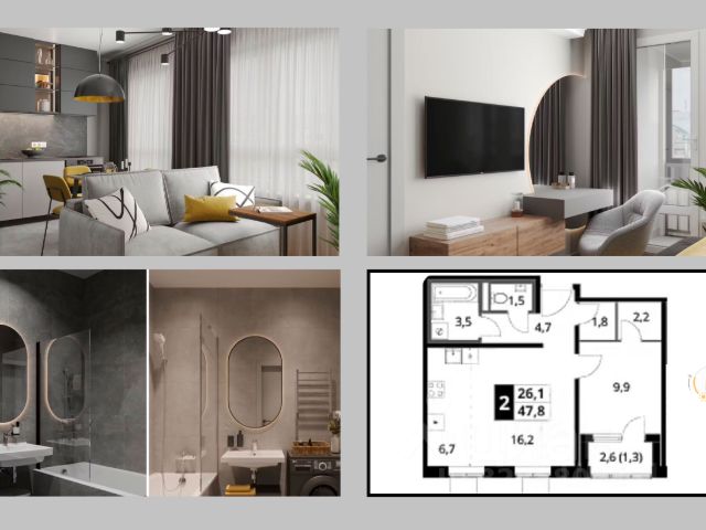 Строим кварталы для жизни с заботой о будущем. Предлагается 2-комнатная квартира комфорт-класса площадью 41,2 кв.м в корпусе 2.1 на 4-м этаже, в жилом комплексе "Ольховый Квартал". Застройщик сдает квартиры с отделкой и без нее. Последний подойдет тем, кто хочет создать свой уникальный интерьер и ничем себя не ограничивать. А если не хочется тратить время на ремонт, можно выбрать опцию — с отделкой. Перед тем как отдать ключи, застройщик установит натяжные потолки, поклеит обои под покраску, положит ламинат светлых тонов, а в санузлах — керамическую плитку и керамогранит. Приобрести квартиру возможно по специальным акциям от застройщика, с текущими условиями акций можно ознакомиться в блоке "Акций". Цена динамическая и может отличаться, уточняйте актуальность у застройщика. Жилой комплекс "Ольховый Квартал" — проект комфорт-класса в Новой Москве, в пешей доступности от 3 станций метро: "Ольховая", "Прокшино" и "Коммунарка" новой Троицкой ветки. Это 3 дома высотой 16 этажей с приватными зелеными дворами. Территория квартала граничит с зеленой рощей, а через дорогу — лесопарк для ежедневных прогулок. Рядом 7 фитнес-клубов, магазины, кафе, медицинские центры, а также школы и детские сады. Пространства для тихого отдыха будут огорожены живыми изгородями. Также высадят ель, которая создаст новогоднее настроение зимой. Предусмотрены современные детские площадки для ребят всех возрастов, воркаут-зона, площадка для выгула и тренировки собак. Любители спортивных игр оценят баскетбольную площадку и столы для настольного тенниса. Светлые фасады гармонируют с окружающей природой. Облицовочный материал — фиброцементные панели. Вечером фасады украшает архитектурная подсветка.