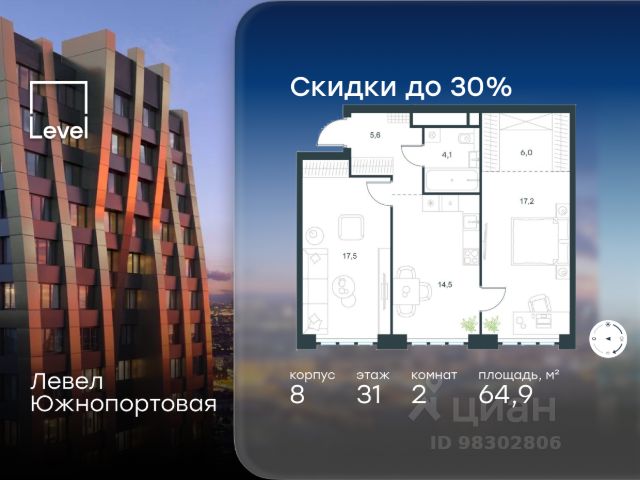 В северной части района Печатники продается 2-комнатный апартамент площадью 45.20 кв.м без отделки. Апартаменты расположены на 4 этаже 23-этажного корпуса 13 в жилом комплексе комфорт-класса Левел Южнопортовая (компания Level Group/Левел групп). Отличная транспортная доступность: - 10 мин. пешком до станции метро "Кожуховская"; - 20 мин. пешком до станции МЦК "Дубровка"; - 3 мин. на авто до ТТК; - 13 мин. на авто до Садового кольца; - 15 мин. на авто до Бульварного кольца. Продуманный архитектурный проект: - авторская архитектура от бюро СПИЧ; - уникальные виды на реку, парки и достопримечательности города; - высота потолков в квартирах до 6 м; - окна высотой до 1,87 м с высоким коэффициентом сопротивления теплоотдаче. Расположение: Жилой комплекс Левел Южнопортовая строится в северной части района Печатники - самой приближенной к центру. Здесь будет сформирован новый район "Южный порт", где построят крупный жилой и общественно-деловой центр, аналогичный Москва-Сити. В течение 10-12 лет в этом месте появятся не только жилые дома, но и развитая инфраструктура для жизни и работы. А еще совсем рядом находится набережная Москвы-реки, где планируется построить причалы для речных трамвайчиков и канатную дорогу. Уже сейчас вокруг жилого комплекса работают десятки магазинов и торговых центров, рядом расположено 6 парков, среди которых музей-заповедник "Коломенское". В 10 минутах пешком - 2 муниципальных и 2 частных детских сада, 7 общеобразовательных школ. Внутренняя инфраструктура: Для отдыха жителей в каждом корпусе предусмотрено лобби, оснащенное местами для отдыха, гостевыми санузлами и лапомойками, а в отдельных корпусах - камином. За счёт больших окон и высоких потолков пространства будут наполнены воздухом и светом. На первых этажах жилого комплекса откроются магазины, салоны красоты, фитнес-центр. Для детей строятся собственные детский сад и школа. Благоустройство: Внутренний двор комплекса разработан совместно с бюро GAFA. Основная идея - создать аналог Центрального парка в Нью-Йорке, гармонично сочетая высотные здания и большое изолированное парковое пространство. Вся площадь двора-парка будет огорожена и составит более 2 га, из которых 45% - озеленение. Одним из самых важных ландшафтных элементов здесь станет небольшая речка, наполняющаяся во время дождя. Вокруг неё появится сеть из островов, внутри которых расположатся тематические зоны спорта и отдыха. Технологии и инженерия: - автоматическая передача в управляющую компанию показаний квартирных счётчиков; - телефонная связь, телевидение и интернет на базе оптической мультисервисной сети; - гостевой Wi-Fi в лобби и на территории двора; - единый ключ доступа для входа на территорию комплекса.