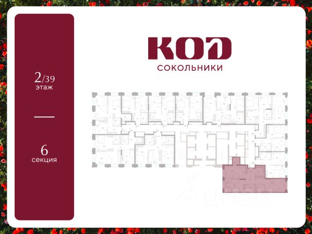 В семейном жилом квартале, расположенном в окружении более 500 га леса и объектов исторического наследия, продается 2-комнатная квартира площадью 55.2 кв. м без отделки. Квартира расположена на 17 этаже 39-этажного корпуса 2.2 жилого квартала бизнес-класса КОД Сокольники от девелопера Новая Эра. Отличная транспортная доступность - 3 мин. пешком до станции МЦД-3 "Митьково"; - 7 мин. пешком до станции метро "Сокольники"; - Удобный выезд на Русаковскую улицу; - 5 мин. на авто до ТТК; - 15 мин. на авто до Садового кольца. Продуманный архитектурный проект - Выразительная архитектура, созданная бюро "Остоженка"; - 70% квартир в квартале - видовые, что позволяет ежедневно наслаждаться панорамами на парк Сокольники, Останкинскую телебашню, исторический центр и Алексеевский монастырь; - 30% квартир - угловые. Увеличенные оконные проемы, панорамное остекление и продуманное расположение комнат усиливают эффект обзорности: гостиные и спальни получают максимум дневного света и живописные виды, которые становятся частью интерьера; - Высокие потолки от 3 метров в типовых планировках; - Дизайнерские лобби от модной студии 211.Studio; - Двухуровневый паркинг с подогреваемой рампой и пологим заездом, подходящим даже для спорткаров; Расположение Семейный жилой квартал КОД Сокольники - это дома бизнес-класса в престижном районе Сокольники. Район отличает хорошая транспортная доступность: несколько минут пешком до станции метро "Сокольники" и платформы МЦД-3 ("Митьково"), регулярные трамвайные и автобусные маршруты, удобный выезд на Русаковскую улицу и Третье транспортное кольцо. До Садового кольца можно доехать за 15 минут. Для пешеходов и велосипедистов в парковой зоне будут оборудованы широкие тротуары и велодорожки, обеспечивая комфортные условия для активного образа жизни. Внутренняя инфраструктура Резидентам будет доступна развитая клубная инфраструктура: собственный фитнес-рум, коворкинг с панорамным видом на парк, игровая комната для детей, пространства для мастер-классов и просторная гостиная, которую можно использовать для отдыха, просмотра кино или проведения мероприятий. На первых этажах жилых домов разместятся объекты стрит-ритейла: кафе, рестораны, магазины и различные сервисы - от аптек и салонов красоты до ателье и барбершопов. Рядом с жилыми корпусами появится деловой квартал с офисами и торговыми площадями на 75 тысяч кв. м, что делает проект привлекательным для тех, кто ценит возможность жить и работать поблизости. Благоустройство Центральным элементом квартала станет благоустроенный двор-парк площадью 3 га с собственным прудом и зелеными зонами для прогулок и отдыха. В границах двора предусмотрены современные игровые и спортивные площадки: мультифункциональная зона воркаута, площадки для волейбола и стритбола, площадки для пилатеса и йоги, скалодром, а также беговые и веломаршруты. В состав проекта войдет образовательный центр, включающий детский сад для 350 малышей, а также школу на 650 учеников.
