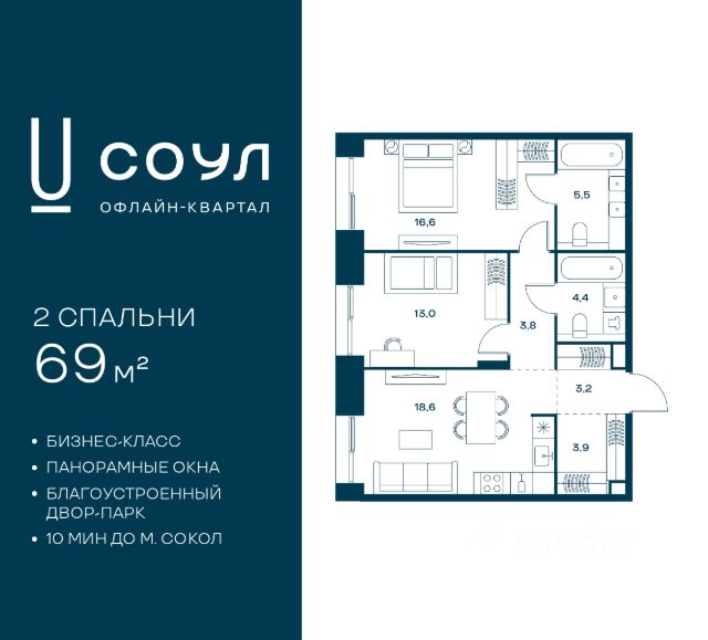 Прямая продажа от застройщика — 2-комнатная квартира общей площадью 61.7 м², без отделки. Квартира 21 расположена на 7-м этаже 22-этажного дома, секция 1. Жилой проект премиум-класса DD:OO:MM Дом на Часовой от девелопера Dar расположен в 12 минутах пешком от метро Аэропорт. Дом находится внутри района и не граничит с шумными магистралями. До Ленинградского проспекта 4 минуты на авто, прямой выезд на ТТК — в 10 минутах. Проект состоит из семи пятиэтажных секций и двух доминант высотой 13 и 22 этажа. Неоклассическая архитектура разработана бюро СПИЧ — одним из крупнейших и наиболее успешных архитектурных бюро в России и за рубежом с реализованными проектами в Германии, Италии и ОАЭ. Высота потолков — от 3,6 метра, в квартирах установлены панорамные окна высотой 2,4 метра. На площадке расположены от 2 до 5 квартир, что обеспечивает высокий уровень приватности. В Доме на Часовой появится подземный паркинг, рассчитанный на 149 мест, ещё 4 машино-места будут размещены на территории. На подземном этаже также появятся 69 кладовых. В гранд-лобби разместится культурное пространство: библиотека с читальным залом, разработанная кураторами книжного магазина "Подписные издания", и музыкальная комната с коллекцией виниловых пластинок и проигрывателями. Здесь же появится детская зона, где родители смогут провести время с детьми за книгой, и коворкинг со стеклянными перегородками для сосредоточенной работы. Идея двора вдохновлена античным идеалом гармонии природы и человека. С-образная форма Дома позволила создать камерный внутренний двор, в котором появятся большая аллея, места спокойного отдыха — уединённые и для компаний, навесы для отдыха и работы раскидистые ивы и низкие кустарники. "Активные" площадки — детская и спортивная — вынесены за периметр дома, но также находятся на огражденной территории. Детская площадка выполнена в монохромных оттенках и подойдёт для разных возрастов. На спортивной площадке появятся тренажёры, брусья и место для йоги.