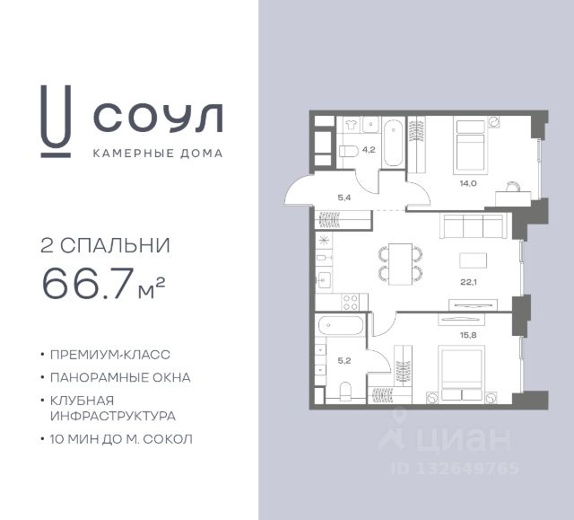Прямая продажа от застройщика — 2-комнатная квартира общей площадью 54.4 м², без отделки. Квартира 170 расположена на 2-м этаже 5-этажного дома, секция 6. Жилой проект премиум-класса DD:OO:MM Дом на Часовой от девелопера Dar расположен в 12 минутах пешком от метро Аэропорт. Дом находится внутри района и не граничит с шумными магистралями. До Ленинградского проспекта 4 минуты на авто, прямой выезд на ТТК — в 10 минутах. Проект состоит из семи пятиэтажных секций и двух доминант высотой 13 и 22 этажа. Неоклассическая архитектура разработана бюро СПИЧ — одним из крупнейших и наиболее успешных архитектурных бюро в России и за рубежом с реализованными проектами в Германии, Италии и ОАЭ. Высота потолков — от 3,6 метра, в квартирах установлены панорамные окна высотой 2,4 метра. На площадке расположены от 2 до 5 квартир, что обеспечивает высокий уровень приватности. В Доме на Часовой появится подземный паркинг, рассчитанный на 149 мест, ещё 4 машино-места будут размещены на территории. На подземном этаже также появятся 69 кладовых. В гранд-лобби разместится культурное пространство: библиотека с читальным залом, разработанная кураторами книжного магазина "Подписные издания", и музыкальная комната с коллекцией виниловых пластинок и проигрывателями. Здесь же появится детская зона, где родители смогут провести время с детьми за книгой, и коворкинг со стеклянными перегородками для сосредоточенной работы. Идея двора вдохновлена античным идеалом гармонии природы и человека. С-образная форма Дома позволила создать камерный внутренний двор, в котором появятся большая аллея, места спокойного отдыха — уединённые и для компаний, навесы для отдыха и работы раскидистые ивы и низкие кустарники. "Активные" площадки — детская и спортивная — вынесены за периметр дома, но также находятся на огражденной территории. Детская площадка выполнена в монохромных оттенках и подойдёт для разных возрастов. На спортивной площадке появятся тренажёры, брусья и место для йоги.