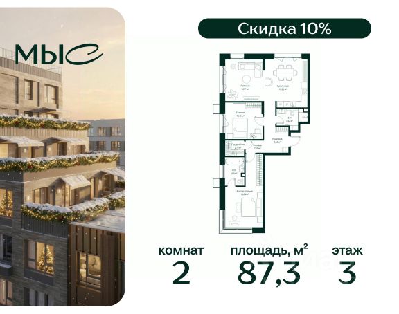 • ✓ В базе Циан 214 2-комнатных квартир в новостройке с ипотекой рядом с метро Крёкшино