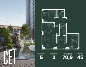 В жилом кластере Родина Парк рядом с природным заказником Долина реки Сетунь продаётся 2-комнатная квартира. Продуманная европланировка, которую легко зонировать под ваши запросы. Потолки от 3,1 м. "Родина Парк" — премиальный семейный кластер с образовательным медиакластером, строящийся на западе Москвы в окружении природного заповедника "Долина реки Сетуни". • Скидки недели на избранный пул лотов • Рассрочка 0% на выгодных условиях до 2 лет • Семейная ипотека, подбор комбо-вариантов ипотечных программ прямо в офисе продаж • Скидки 8% при 100% оплате или ипотеке. ЛОКАЦИЯ: 8 минут пешком до станции БКЛ "Давыдково". 12 минут на автомобиле до Нового Арбата. Удобные выезды на Кутузовский проспект, Аминьевское шоссе. ИНФРАСТРУКТУРА И СЕРВИСЫ ДЛЯ ЖИТЕЛЕЙ - Уникальная экосистема для развития, здоровья и творчества на территории 3,5 Га: - Первый в России образовательный медиакластер (с участием Русской медиагруппы) для творческого развития детей и взрослых с возможностью получить востребованную профессию в сфере шоу-бизнеса. - Инфраструктура и сервисы для семей с детьми на территории жилого кластера (частный детский сад, детские игровые пространства, творческие студии для занятий музыкой и танцами, безопасная и комфортная среда для детей и родителей), событийно-культурная площадка для проведения семейного досуга); - Здоровая среда (биохакинг-центр, фитнес-зал и спортивная инфраструктура во дворе, медитационные пространства, инженерные решения для освещения, свежего воздуха и очистки воды, сервисы красоты и поддержания активного долголетия); - Сервисы заботы (инфраструктура комфорта - подземный паркинг, кладовые, колясочные, консьерж- сервис, умный дом, мобильное приложение, профессиональная управляющая компания, сервисы охраны и обеспечение абсолютной безопасности) - Комьюнити резидентов (социальные пространства для дружеского и делового общения - летний атриум с уличным кинотеатром, зоны отдыха, кафе и рестораны, комьюнити-сервис с культурно- событийной программой в медиакластере); - Модуль благосостояния (комфортные пространства для работы и саморазвития - коворкинги и переговорные). ИНФРАСТРУКТУРА РАЙОНА: Насыщенная образовательная среда: филиалы МГИМО, МГУ, МГТУ, Сколково. Топовые школы: 6 лучших частных школ Москвы и области (Forbes) в 10 минутах езды. Природное окружение для пеших прогулок, спорта и отдыха. "Родина Парк" — это место, где растут и дети, и ваши возможности. Экосистема, где всё подчинено развитию — физически, профессионально, творчески.
