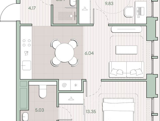 О квартире Продаётся 2-комнатная квартира общей площадью 57.69 кв.м. без отделки. Квартира расположена на 7 этаже корпуса 4.2 в жилом комплексе бизнес-класса "Среда на Кутузовском" в пешей доступности от метро "Кунцевская". О жилом комплексе Комплекс предназначен для людей, которые ставят в приоритет свой комфорт, умеют прислушиваться к себе и понимают, что нужно для внутренней гармонии. Это проект для тех, кто ценит свое время и использует его правильно. Для тех, кто умеет радоваться тому, что есть. "Среда на Кутузовском" — личное место силы и гармонии в двух шагах от центра города. Инфраструктура Жилой комплекс строится в престижном и зеленом Кунцево. Здесь расположены различные торговые центры, престижные учебные заведения (МГУ, РЭУ им. Плеханова, Финансовый университет при Правительстве РФ, РУДН) медицинские клиники. Представлены широкие возможности для поклонников разных видов спорта: от бега в ближайших парках и велозаездов до гребли, баскетбола, футбола, хоккея, фигурного катания и катания на лыжах. На каждый день подойдет World Class с открытым бассейном — он находится всего в 1 минуте от дома. Выбор мест для прогулок также разнообразен: Суворовский парк, лесной массив Крылатских холмов, Москворецкий парк и природный заказник "Долина реки Сетунь". 10 мин пешком: -м. Кунцевская -вся необходимая инфраструктура До 15 мин на авто: -Северо-Западная хорда -Кутузовский проспект -Рублевское шоссе -МКАД -Можайское шоссе Особенности Проект сочетает в себе ритмичность и динамичность, благодаря своей архитектуре, при он этом окружен зеленью и парками. "Среда на Кутузовском" погружает в активный и разнообразный образ жизни, дает вариативные возможности досуга и вдохновляет на новые свершения. —Зоны отдыха у воды —Принцип многослойности в архитектуре —Зона барбекю —Пентхаусы —Умный паркинг —Гайдбук по управлению умным домом —Окна в пол на всех этажах