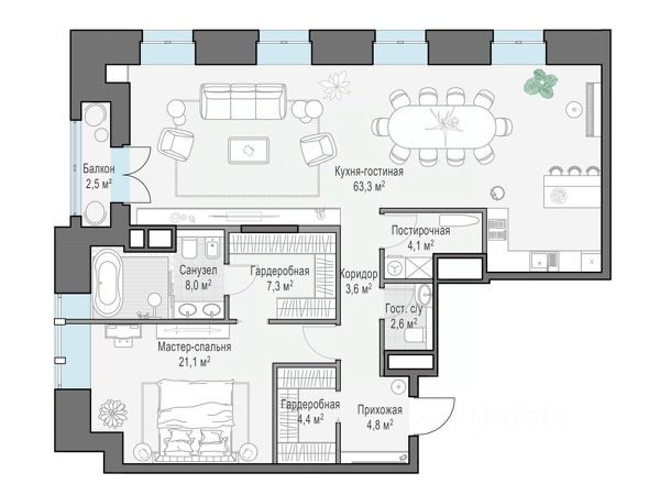 Просторная квартира с двумя приватными мастер-спальнями площадью 119,5 кв. м. В кухне-гостиной три больших арочных окна и балкон, которые наполняют её светом. Окно в ванной комнате дарит возможность зарядиться энергией первых лучей солнца. Роскошная планировка и высота потолка 3,9 метра позволяют создать пространство для любого сценария жизни. "Чистые Пруды" - исторический дом на 34 квартиры в уникальном атмосферном районе Москвы, в 50 метрах от Чистых прудов. Это одно из самых романтичных и престижных мест столицы. Дом расположен в глубине квартала, в окружении тихих переулков - в полной тишине и приватности старого московского двора. "Чистые Пруды" - деликатно реконструированный исторический дом с изысканной архитектурой начала прошлого века авторства барона Отто фон Дессина. У дома максимально сохранены архитектурные формы 1915 года и подлинные кирпичные стены. В "Чистых Прудах" создана небывалая для таких домов инфраструктура. Только для жителей на месте каретного двора XIX века расположен Clubhouse с пространствами для общения соседей, здорового образа жизни и развития детей. В Lounge выделены каминная, патио, зона для проведения мастер-классов и настольных игр. Работает бесплатный фитнес по стандарту Fit Lab с зонами кардио, силовых тренажёров, свободных весов и функционального тренинга. Для детей в Clubhouse создана игровая комната по стандарту Kid`s Lab. Есть свой всесезонный двор-сад. В доме представлены роскошные квартиры с дровяными каминами и высокими потолками от 3,9 до 5,4 м. О жителях и доме заботится Служба комфорта Smineх, которая предлагает сервис уровня 5-звёздочных отелей и сохраняет изначальный облик и концепцию дома. Девелопер проекта - Sminex. Компания обладает 23-летним опытом строительства жилой и коммерческой недвижимости. В 2022 году Sminex приобрёл девелопера "Интеко", в 2024 году - "Инград". Сегодня Sminex - девелопер N1 элитной и премиальной недвижимости, который создаёт комфортную и престижную среду.
