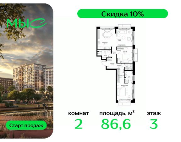Прямая продажа от застройщика. Продаётся 2-комнатная квартира общей площадью 92.19 м² без отделки в премиальном жилом комплексе "МЫС" на 2-м этаже 12 этажного дома. Квартира расположена в корпусе "Сибирь". Проект МЫС — это, прежде всего, идеальное место для семей. В рамках проекта построят государственную школу, два детских сада и дворец спорта площадью 20 000 м2 с термальным комплексом, выплывным бассейном, фитнес-залом, теннисными, сквош и падел кортами и секциями для детей. На территории площадью, сравнимой с тремя парками Зарядье, появятся кафе и рестораны, пруд с набережной, спортивные и детские площадки, скейт-парк, лыжные и веломаршруты. Расположение: - 2 минуты до скоростной трассы М1 и Минского шоссе; - 10 минут до МКАД; - 15 минут до МЦД Лесной Городок - 20 минут до делового центра "Москва-Сити"; - 28 минут до аэропорта "Внуково". Благоустройство: - велосипедные и лыжные маршруты; - собственная набережная и парк; - лаунж-зоны в окружении природы; - беседки у очага; - дворец спорта площадью 20 000 м²; - термальный комплекс с тремя бассейнами; - 4 теннисных и падел-корта; - 6 сквош-кортов; - многофункциональный спортзал; - скейт-парк; - просторная площадь для прогулок с фонтаном; - детский Клуб с творческими секциями; - гастро-доминанта; - кафе у пруда, рестораны, ритейл. Окружение - соседство с лесным фондом; - школа на 1250 мест и 2 детских сада на 350 и 255 мест; - Дубковский и Подушкинский леса, парк "Рассказовка", Мещерский парк. Действуют специальные условия при 100% оплате, подробности уточняйте у менеджера в офисе продаж.