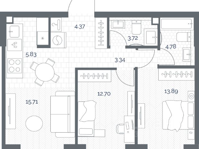 В премиальном жилом квартале Прайд продается 2-комнатная квартира в 1 корпусе, на 6 этаже, в секции 1. Её общая площадь составляет 47.8 м². Пространство включает 1 уютную спальню 14,4 м², просторную кухню-гостиную 21,5 м² и ванную комнату 5,7 м². Ключи в 2026 году. Удобная локация: Жилой квартал расположен в 15 минутах от Цветного бульвара в историческом районе Марьина Роща. До любой точки города быстро и удобно добраться, как на общественном транспорте, так и на авто — комплекс находится всего в 3 минутах от ТТК и в пешей доступности от метро. Яркая архитектура с переменной высотностью от 7 до 22 этажей от именитого бюро APEX формирует запоминающийся облик проекта. Развитая инфраструктура: Территория квартала делится на несколько отдельных частей: открытый просторный бульвар 3500 м² для прогулок и два внутренних камерных двора. Внутри предусмотрены площадки для спорта, места для игр и тихие пространства для отдыха и неторопливого общения. Коммерческие и торговые помещения спроектированы на уровне первых этажей: супермаркеты, магазины, рестораны и кофейни, барбершоп, спа-салон и другие сервисные точки. Образовательный центр со школой на 257 учеников и детским садом на 112 мест на собственной территории квартал - идеальное решение для семей с детьми. Таким образом, внутренняя инфраструктура Прайд обеспечит все базовые потребности будущих жителей. Благоустроенная территория: Ландшафтный дизайн с многоуровневым и замысловатым озеленением будет радовать жителей на протяжении всех сезонов — богатая флора дворов включает в себя несколько десятков видов растений. Лобби как в лучших отелях мира: На первых этажах резидентов и гостей встретят лобби с авторским дизайном от Sundukovy Sisters, бюро знаменито своими работами для отелей и ресторанов премиум-класса во всем мире. Надежный застройщик: Девелопер PIONEER — компания с 24-летней историей. В портфеле — 40 проектов жилой, коммерческой, социальной и многофункциональной недвижимости в Москве и Санкт-Петербурге. С 2001 года было реализовано 2,9 млн м². В настоящее время 1,6 млн м² находятся в стадии проектирования и строительства. Среди новых знаковых проектов девелопера — премиальные жилые кварталы и деловые объекты класса A.