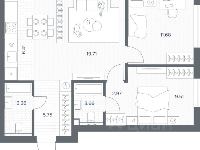 В премиальном жилом квартале Прайд продается 2-комнатная квартира в 1 корпусе, на 6 этаже, в секции 1. Её общая площадь составляет 47.8 м². Пространство включает 1 уютную спальню 14,4 м², просторную кухню-гостиную 21,5 м² и ванную комнату 5,7 м². Ключи в 2026 году. Удобная локация: Жилой квартал расположен в 15 минутах от Цветного бульвара в историческом районе Марьина Роща. До любой точки города быстро и удобно добраться, как на общественном транспорте, так и на авто — комплекс находится всего в 3 минутах от ТТК и в пешей доступности от метро. Яркая архитектура с переменной высотностью от 7 до 22 этажей от именитого бюро APEX формирует запоминающийся облик проекта. Развитая инфраструктура: Территория квартала делится на несколько отдельных частей: открытый просторный бульвар 3500 м² для прогулок и два внутренних камерных двора. Внутри предусмотрены площадки для спорта, места для игр и тихие пространства для отдыха и неторопливого общения. Коммерческие и торговые помещения спроектированы на уровне первых этажей: супермаркеты, магазины, рестораны и кофейни, барбершоп, спа-салон и другие сервисные точки. Образовательный центр со школой на 257 учеников и детским садом на 112 мест на собственной территории квартал - идеальное решение для семей с детьми. Таким образом, внутренняя инфраструктура Прайд обеспечит все базовые потребности будущих жителей. Благоустроенная территория: Ландшафтный дизайн с многоуровневым и замысловатым озеленением будет радовать жителей на протяжении всех сезонов — богатая флора дворов включает в себя несколько десятков видов растений. Лобби как в лучших отелях мира: На первых этажах резидентов и гостей встретят лобби с авторским дизайном от Sundukovy Sisters, бюро знаменито своими работами для отелей и ресторанов премиум-класса во всем мире. Надежный застройщик: Девелопер PIONEER — компания с 24-летней историей. В портфеле — 40 проектов жилой, коммерческой, социальной и многофункциональной недвижимости в Москве и Санкт-Петербурге. С 2001 года было реализовано 2,9 млн м². В настоящее время 1,6 млн м² находятся в стадии проектирования и строительства. Среди новых знаковых проектов девелопера — премиальные жилые кварталы и деловые объекты класса A.