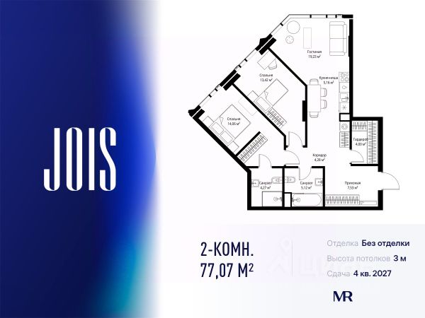 10 минут от Москва-Сити В продаже квартира площадью 72.90 м² с предчистовой отделкой на 26 этаже 55 этажного дома. Квартира расположена в корпусе Anna. JOIS это премиальный жилой комплекс от девелопера MR в районе Хорошёво-Мнёвники. Он включает несколько эффектных небоскрёбов высотой 47-56 этажей, эксклюзивные форматы квартир с панорамным остеклением, подземный двухуровневый паркинг на 239 м/м, собственную приватную инфраструктуру, закрытый ландшафтный парк 2,3 Га с функциональным зонированием и охраняемой территорией. Над проектом работали лучшие команды международных агентств с многолетним опытом: Genpro, S&P, iLight International и другие. Расположение Пешком: - 5 мин. ст. МЦК "Хорошёво"; - 15 мин. ст. м. "Народное ополчение"; - 10 мин. ст. метро "Звенигородская" с 2027 года; - 20 мин. причал "Карамышевский". На автомобиле: - 3 мин. до Звенигородского шоссе; - 5 мин. до ТТК: - 8 мин. до Серебряного бора и Строгинского затона - 10 мин. до ММДЦ "Москва-Сити"; - 40 мин. до аэропорта "Шереметьево"; Благоустройство - собственный ландшафтный парк 2,3 Га; - парк скульптур от Cosmoscow; - консьерж-сервис 24/7; - сервисный лифт и вход; - игровые и спортивные площадки; - коворкинг с библиотекой; - лаунж-зона с камином; - игровые комнаты для детей и клуб для подростков с оборудованием для видеоигр; - спортивная студия для индивидуальных тренировок; - гостиная с мини-кухней; - зоны для выгула собак; - подогрев пешеходных дорожек в зимний период; - автополив зелёных насаждений; - премиальные рестораны, кафе, химчистки, аптеки и супермаркеты. Окружение - 4 парка: Покровское-Стрешнево, Филёвский парк, Серебряный бор и Берёзовая роща; - 15 общеобразовательных заведений, в том числе две школы из самых лучших в Москве: государственная школа "Интеграл" и частная "Хорошкола"; - спортивное сооружение "ВЭБ Арена", домашний стадион ФК ЦСКА; - крупнейший в Европе торгово-развлекательный центр "Авиапарк".
