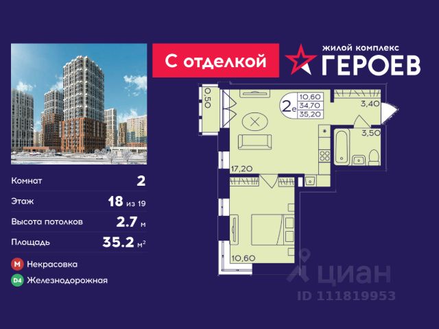 • ✓ В базе Циан 698 2-комнатных квартир в новостройке с ипотекой рядом с метро Ольгино