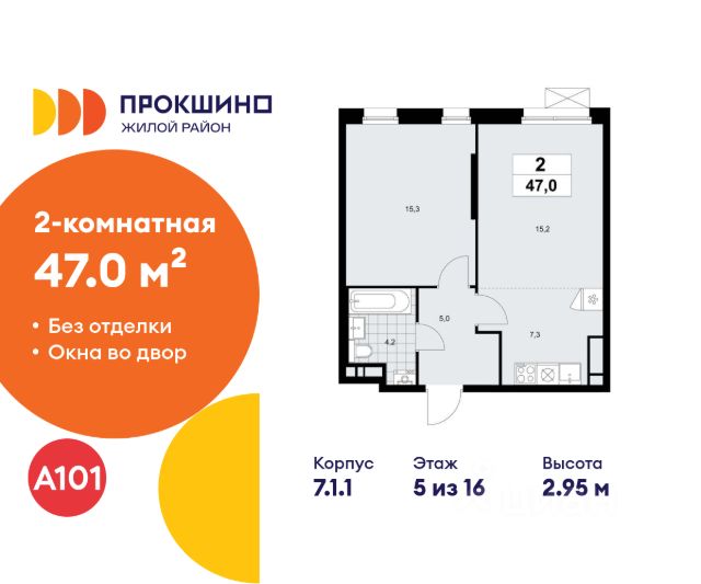 Продается двухкомнатная квартира 815 в новостройке Жилой квартал "Прокшино" по адресу Москва, ТиНАО, Новомосковский АО, Сосенское С/П, жилой комплекс Прокшино, к11.1.4, район Коммунарка, Новомосковский административный округ, Москва. Общая площадь квартиры - 33.90 кв. м., этаж 16 из 16, секция 11. Тип проекта, по которому построен дом - монолит, компания-застройщик - ООО "А101". Стоимость квартиры - 16900845 Р. ПРЕДЛОЖЕНИЯ ОТ ЗАСТРОЙЩИКА В МАРТЕ 2026: Ипотека от 13,9 % для всех! На весь срок. "Семейная ипотека" вернулась. Ставка от 3,5 % на весь срок! Без удорожания! Выгодное ипотечное комбо: Ипотека от 2200 р./мес. и от 6 % после рождения ребёнка! Ипотека для всех "Держи пять!" - ставка 5 % на 2 года! *более подробную информацию по скидкам и акциям уточняйте в отделе продаж ЖК "Прокшино" строится на юго-западе Москвы всего в 500 м от одноимённой станции метро, что обеспечивает быстрый и удобный доступ в любую точку столицы. Вдоль живописного пруда почти на километр протянулась благоустроенная набережная. Монолитные дома комфорт- и бизнес-класса - узнаваемой выразительной архитектуры, с архитектурно-художественной подсветкой фасадов. Пешеходный мост через пруд - украшение района и главный путь от метро. На берегу обустроены зоны отдыха с качелями, деревянными настилами, шезлонгами и тренажёрами. Зелёные дворы свободны от машин. В районе реализуется проект благоустройства "Природа - в каждый двор!". Рядом с "Прокшино" появятся всесезонный горнолыжный курорт, аквапарк с дайвинг- и сёрфинг-центром. Развивается крупный бизнес-квартал. В пешей доступности от дома открываются детские сады, активно строится новое здание одной из лучших школ Москвы. Работают магазины, кафе, бытовые сервисы. Через район проходят веломаршруты и прогулочные дорожки. Преимущества "Прокшино": - 500 м до метро "Прокшино" - благоустройство "Природа - в каждый двор!" - набережная Хованского пруда - уникальная инфраструктура - "Школа Ямбурга" (топ-50 Москвы)