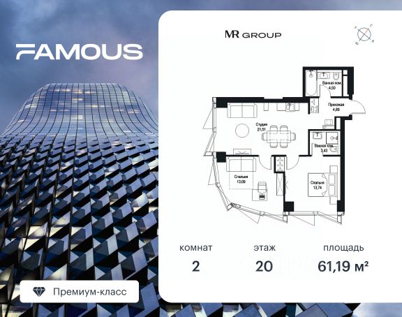 Прямая продажа от застройщика. Продаётся 2-к квартира площадью 62.95 м² с предчистовой отделкой на 37-м этаже премиального небоскреба Famous. Срок ввода в эксплуатацию - IV кв. 2024 г. Выдача ключей - III кв. 2025 г. Если к слову "будущее" подобрать архитектурный синоним, им непременно станет премиальный небоскреб Famous. Он расположен в закрытом квартале "Фили Сити" - настоящем городе в городе, окруженном зеленым ореолом из аллей и скверов, с инфраструктурой для жизни и отдыха самых взыскательных горожан. Резидентов Famous ждет особая привилегия - открывающиеся из окон бескрайние панорамы, с видами на парк Фили, Поклонную гору, Москва-реку и Москва-Сити. Эффектный ультрасовременный 57-этажный небоскреб, пластичный в нижней части, наверху трансформируется и взмывает ввысь выразительной скульптурой с обтекаемой поверхностью. Фасад украшенный стеклянными эркерами в виде прямых треугольных призм, словно олицетворяет собой идеально собранный пазл. Это безупречное решение для тех, кто не боится лидерства и высоты, не ищет простых путей, держит высокую планку во всем, не останавливается на достигнутом и живет в ритме мегаполиса. Не зря логотип Famous украшает графический элемент Триумфальной арки на Кутузовском проспекте - символ успеха и жизненных побед. Особенности дома: - Проект премиум-класса рядом с центром Москвы - Футуристическая авторская архитектура от бюро ADM - Ультрасовременные инженерные решения современных небоскрёбов - Элегантное решение орнаментальной композиции фасада от бюро ADM - Famous станет первым проектом в Москве с интерьерами лобби от международной архитектурной компании A ++ - Панорамное остекление по всему фасаду, головокружительные виды на достопримечательности Москвы, парк Фили, Москва-Сити и Поклонную гору - Европейский подход к благоустройству: площадь с фонтанами, парк-променад, детские и спортивные площадки, зоны отдыха - Продуманная концепция инфраструктуры: уютные кафе и рестораны, супермаркет, фитнес-студия, службы сервиса, детский центр развития - Эргономичные планировки от бюро Олега Клодта Транспортная доступность: - Удобный выезд на Кутузовский проспект и ТТК - В пешей доступности станции метро "Фили", "Багратионовская" и "Парк Победы" Компания MR Group предлагает своим клиентам специальные условия приобретения квартир в рамках программ ипотечного кредитования от банков-партнеров. Купить 2-комнатную квартиру в ипотеку в новостройке рядом с метро Парк Победы.