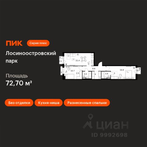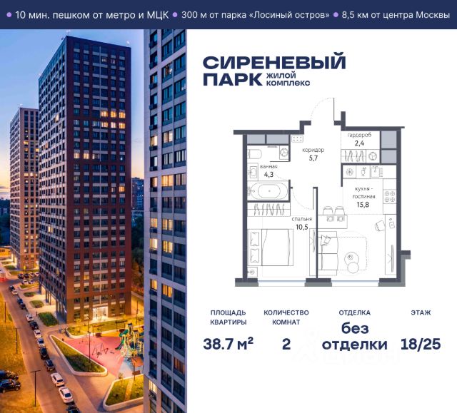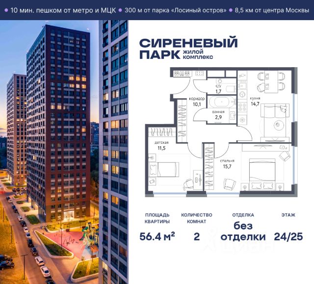 Продаётся просторная 2-комнатная квартира общей площадью 58.8 м² на 7 этаже в новом жилом комплексе "Сиреневый парк", расположенном в Восточном административном округе Москвы на улице Тагильская. Всего 10 минут ходьбы от станции метро "Бульвар Рокоссовского" и одноимённой платформы МЦК. Высококачественное монолитное строительство гарантирует сохранение тепла в доме, а наличие квартир с предчистовой и чистовой отделкой позволяет вам сэкономить время и сразу же переехать в свое жилье после покупки. Благодаря разнообразию планировок вы сможете выбрать идеальный вариант, соответствующий вашим предпочтениям и образу жизни. Предлагаются квартиры: - с просторными кухнями-гостиными, - с нишами для хранения вещей и отдельными гардеробными, - мастер-спальни с собственными санузлами, - большие комнаты с высокими потолками (2,9 м) и с увеличенными безопасными окнами (1,95 м) , которые наполнят ваш дом естественным светом; - с чистовой отделкой по двум дизайн-проектам на выбор; - с остекленными лоджиями и панорамными видами на лес. Каждая деталь в этом доме создана для вашего комфорта: - безбарьерная среда, - бесшумные скоростные лифты, - машиноместа в отапливаемом подземном паркинге и кладовые на -1 этаже с доступом из лифта, - развитая инфраструктура с супермаркетами, кафе, фитнес-клубами, салонами красоты и частным детским садом обеспечивает максимальное удобство жителям. В 300 метрах от ЖК расположен Национальный парк "Лосиный остров". Способы покупки: 100%, Trade-in, Семейная ипотека без наценки, стандартная ипотека. Запишитесь на просмотр в офис продаж и получите свою персональную скидку по акции Назови свою скидку. ЖК "Сиреневый парк" — гармония в деталях, совершенство в каждом моменте. Застройщик проекта - AFI Development.