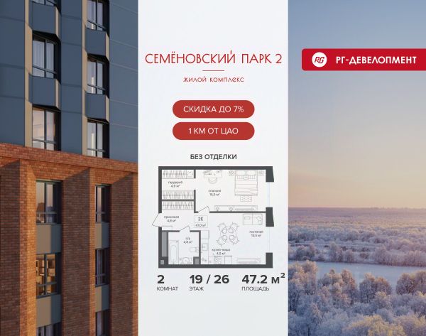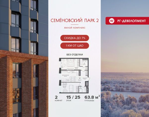 Ипотека для каждого! Полная стоимость кредита от 13,192% до 17,149%. Ставка от 0,11% в АО "Альфа-Банк", ген. лицензия ЦБ РФ 1326 от 16.01.2015. Ставка фиксируется на первые 12 месяцев, далее полная стоимость кредита от 22,022% до 24,599% ставка 21,59%. Первоначальный взнос — от 20,1% от стоимости квартиры. Срок кредитования — от 4 до 30 лет. Ипотека на весь срок! Полная стоимость кредита от 23,396% до 26,058% со ставкой 14,5%! Первоначальный взнос —от 20,01% от стоимости квартиры. Срок кредитования — от 3 до 30 лет. АО "Банк ДОМ.РФ" универсальная лицензия Банка России 2312 от 19.12.2018. Скидка 7% при покупке квартиры! Цена указана с учетом максимального размера скидки. Продается 2-к квартира 66,5 кв.м. в ЖК "Семеновский парк 2" на 11-м этаже 18 этажного дома. Компания "РГ-Девелопмент" предоставляет скидку на квартиры в жилом комплексе. Акция действительна до 15.03.2026 включительно. Чтобы воспользоваться предложением, необходимо подписать договор на приобретение недвижимости до 15.03.2026 включительно. Компания "РГ-Девелопмент" вошла в ТОП-10 девелоперов по объёму введённого жилья в "Старой Москве" по итогам 2025 года. Прямая продажа от застройщика! Квартиры без отделки. Срок сдачи корпуса - 1 кв. 2026 г. ЖК "Семеновский парк 2" - это идеальное место для того, чтобы стать вашим домом. Проект расположен в исторической части Москвы вблизи Измайловского лесопарка, в 1 км от ЦАО. 4 станции метро отделяют вас от Красной площади и 15 минут на автомобиле - от Садового кольца.