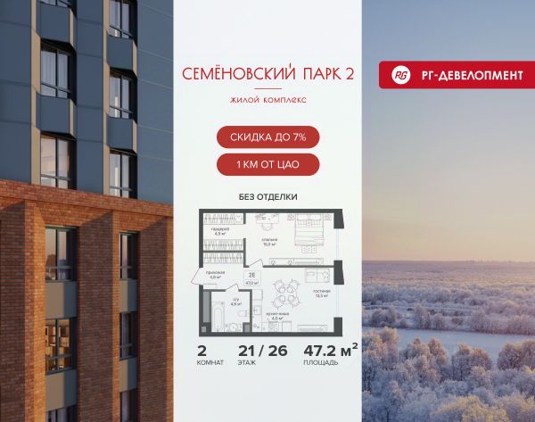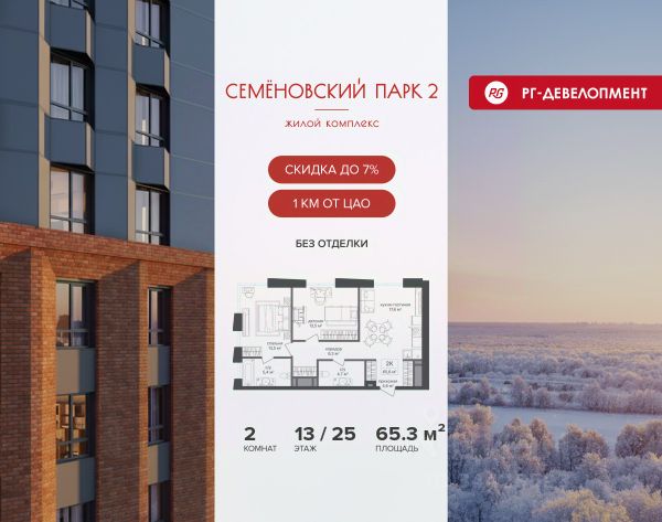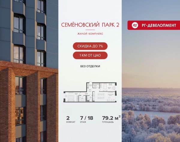 Ипотека для каждого! Полная стоимость кредита от 12,378% до 18,537%. Ставка от 0,11% в АО "Альфа-Банк", ген. лицензия ЦБ РФ 1326 от 16.01.2015. Ставка фиксируется на первые 12 месяцев, далее полная стоимость кредита от 22,025% до 24,935% ставка 21,59%. Первоначальный взнос — от 20,1% от стоимости квартиры. Срок кредитования — от 4 до 30 лет. Ипотека на весь срок! Полная стоимость кредита от 23,396% до 26,058% со ставкой 14,5%! Первоначальный взнос —от 20,01% от стоимости квартиры. Срок кредитования — от 3 до 30 лет. АО "Банк ДОМ.РФ" универсальная лицензия Банка России 2312 от 19.12.2018. Скидка 7% при покупке квартиры! Цена указана с учетом максимального размера скидки. Продается 2-к квартира 66,5 кв.м. в ЖК "Семеновский парк 2" на 11-м этаже 18 этажного дома. Компания "РГ-Девелопмент" предоставляет скидку на квартиры в жилом комплексе. Акция действительна до 28.02.2026 включительно. Чтобы воспользоваться предложением, необходимо подписать договор на приобретение недвижимости до 28.02.2026 включительно. Компания "РГ-Девелопмент" вошла в ТОП-10 девелоперов по объёму введённого жилья в "Старой Москве" по итогам 2025 года. Прямая продажа от застройщика! Квартиры без отделки. Срок сдачи корпуса - 1 кв. 2026 г. ЖК "Семеновский парк 2" - это идеальное место для того, чтобы стать вашим домом. Проект расположен в исторической части Москвы вблизи Измайловского лесопарка, в 1 км от ЦАО. 4 станции метро отделяют вас от Красной площади и 15 минут на автомобиле - от Садового кольца.