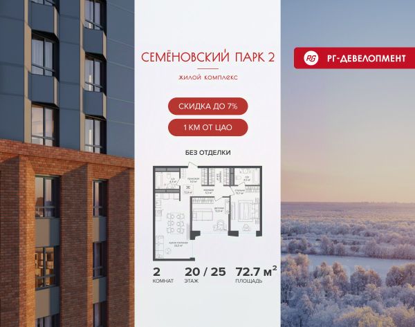 Ипотека для каждого! Полная стоимость кредита от 13,192% до 17,149%. Ставка от 0,11% в АО "Альфа-Банк", ген. лицензия ЦБ РФ 1326 от 16.01.2015. Ставка фиксируется на первые 12 месяцев, далее полная стоимость кредита от 22,022% до 24,599% ставка 21,59%. Первоначальный взнос — от 20,1% от стоимости квартиры. Срок кредитования — от 4 до 30 лет. Ипотека на весь срок! Полная стоимость кредита от 23,396% до 26,058% со ставкой 14,5%! Первоначальный взнос —от 20,01% от стоимости квартиры. Срок кредитования — от 3 до 30 лет. АО "Банк ДОМ.РФ" универсальная лицензия Банка России 2312 от 19.12.2018. Скидка 7% при покупке квартиры! Цена указана с учетом максимального размера скидки. Продается 2-к квартира 66,5 кв.м. в ЖК "Семеновский парк 2" на 11-м этаже 18 этажного дома. Компания "РГ-Девелопмент" предоставляет скидку на квартиры в жилом комплексе. Акция действительна до 15.03.2026 включительно. Чтобы воспользоваться предложением, необходимо подписать договор на приобретение недвижимости до 15.03.2026 включительно. Компания "РГ-Девелопмент" вошла в ТОП-10 девелоперов по объёму введённого жилья в "Старой Москве" по итогам 2025 года. Прямая продажа от застройщика! Квартиры без отделки. Срок сдачи корпуса - 1 кв. 2026 г. ЖК "Семеновский парк 2" - это идеальное место для того, чтобы стать вашим домом. Проект расположен в исторической части Москвы вблизи Измайловского лесопарка, в 1 км от ЦАО. 4 станции метро отделяют вас от Красной площади и 15 минут на автомобиле - от Садового кольца.