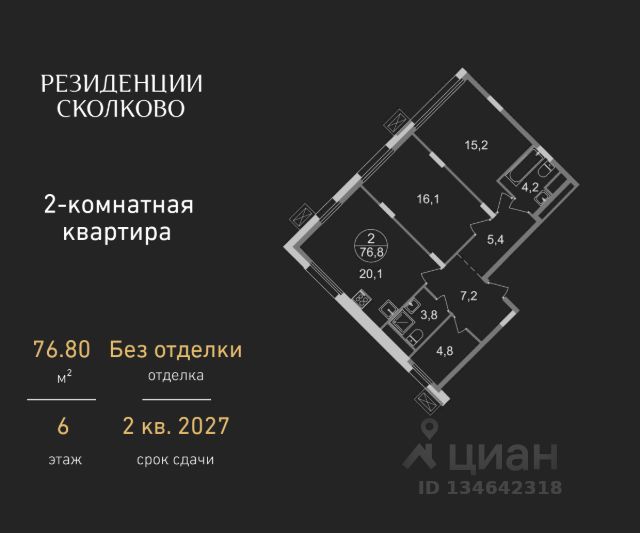 - Планировка линейная. Спальни 15,2 / 14,3 кв.м. Кухня гостиная 14.5 кв.м.