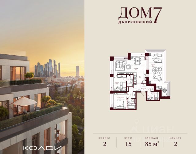 2-комнатная квартира площадью 57,2 м2. Высота потолков 3,16 м. Этаж 23 из 41. О проекте АУРА новая премиальная доминанта Москвы в 10 минутах от Садового кольца. Проект состоит из 42-этажной Бронзовой башни и 41-этажной Серебряной. Рядом набережная Москвы-реки, Даниловский рынок, музеи и галереи, престижные школы и вузы. Двор и благоустройство Приватная территория АУРЫ состоит из нескольких функциональных зон для тихого отдыха, работы и активного времяпровождения на свежем воздухе. На нижнем уровне расположены детские и спортивные площадки, скалодром и крытый павильон для подвижных игр. Выше — амфитеатр для отдыха и вечерних променадов, уличный коворкинг с мебелью и лаунж-зоны с лежаками у воды. На крыше — тихий уголок для занятий йогой, встречи рассветов и наслаждения закатами. По всему двору проложены пешеходные дорожки с подогревом в зимний сезон. Придомовую территорию АУРЫ украсит уникальный для Москвы объект — скала из натурального камня с водопадом, которая станет новой городской достопримечательностью. Эксклюзивная инфраструктура Только для резидентов: • Бьюти-комната • Коворкинг, переговорные и акустические кабинеты • Детская игровая комната • Спортзал и студия для тренировок • Просторные колясочные • Сервисная комната • Лапомойки для домашних питомцев Инфраструктура в составе проекта: • Ресторан авторской кухни • Современная медицинская клиника • Частный детский сад • Бизнес-центр класса "А" • Коммерческие помещения, закрывающие любые потребности — супермаркет, химчистка и др. Атрибуты комфорта • Индивидуальная вентиляция квартир • Вентиляция с очисткой воздуха в общих зонах • Мультизональное центральное кондиционирование (VRF) • Горячая вода круглый год • Вода качества, сопоставимого с питьевой • Усиленная звукоизоляция квартир Входные группы • Гранд-лобби в стиле современной роскоши • Дизайнерские лобби в каждой башне • Панорамное остекление Квартиры Более 40 планировок: от уютных студий до просторных семейных лотов. Всего 916 квартир площадью от 28,1 до 148,8 м². Высота потолков от 3,16 до 6,2 м. Уникальные планировки: • Квартиры с террасами • Квартиры с окном в ванной • Квартиры с круговым остеклением • Двухуровневые пентхаусы Паркинг и келлеры Двухуровневый подземный паркинг на 563 парковочных места: • Постоянные места: 496 (в том числе 48 мест для маломобильных) • Гостевые места: 67 • Персональные кладовые и велостанция • Мойка автомобилей • Станция для подкачки шин • Зарядки для электромобилей • Зона для разгрузки крупногабаритных предметов Интеллектуальные системы • Персональный бесконтактный доступ на территорию и в здание по электронному ключу (Bluetooth/RFID) • Премиальные лифты Mitsubishi • Автоматический въезд на паркинг для резидентов по распознаванию номеров • Круглосуточное видеонаблюдение с возможностью push-уведомлений • Система датчиков для круглосуточного мониторинга • Усиленный сигнал связи — стабильный прием сотовой связи и интернета на всей территории Сервис • Управляющая компания д