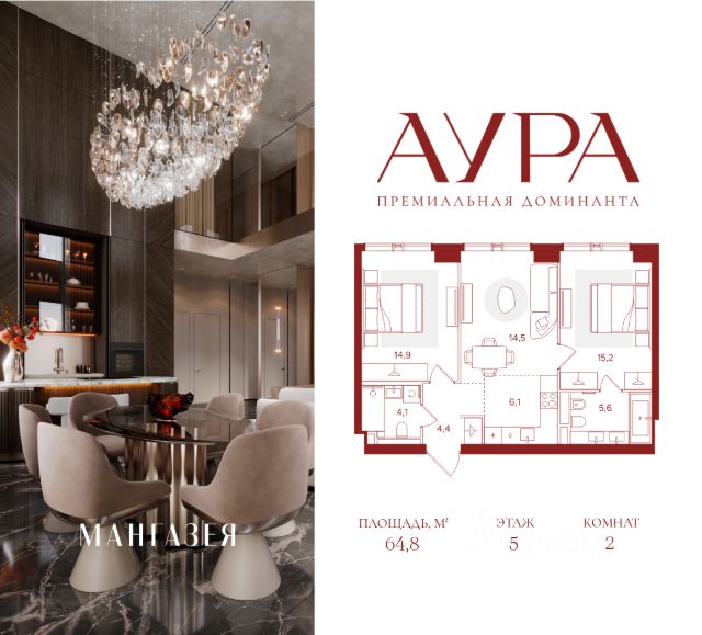 2-комнатная квартира площадью 57.20 м2. Высота потолков 3.16 м. Этаж 23 из 41. О проекте АУРА новая премиальная доминанта Москвы в 10 минутах от Садового кольца. Проект состоит из 42-этажной Бронзовой башни и 41-этажной Серебряной. Рядом набережная Москвы-реки, Даниловский рынок, музеи и галереи, престижные школы и вузы. Двор и благоустройство Приватная территория АУРЫ состоит из нескольких функциональных зон для тихого отдыха, работы и активного времяпровождения на свежем воздухе. На нижнем уровне расположены детские и спортивные площадки, скалодром и крытый павильон для подвижных игр. Выше — амфитеатр для отдыха и вечерних променадов, уличный коворкинг с мебелью и лаунж-зоны с лежаками у воды. На крыше — тихий уголок для занятий йогой, встречи рассветов и наслаждения закатами. По всему двору проложены пешеходные дорожки с подогревом в зимний сезон. Придомовую территорию АУРЫ украсит уникальный для Москвы объект — скала из натурального камня с водопадом, которая станет новой городской достопримечательностью. Эксклюзивная инфраструктура Только для резидентов: • Бьюти-комната; • Коворкинг, переговорные и акустические кабинеты; • Детская игровая комната; • Спортзал и студия для тренировок; • Просторные колясочные; • Сервисная комната; • Лапомойки для домашних питомцев. Инфраструктура в составе проекта: • Ресторан авторской кухни; • Современная медицинская клиника; • Частный детский сад; • Бизнес-центр класса "А"; • Коммерческие помещения, закрывающие любые потребности — супермаркет, химчистка и др. Атрибуты комфорта • Индивидуальная вентиляция квартир; • Вентиляция с очисткой воздуха в общих зонах; • Мультизональное центральное кондиционирование; • Горячая вода круглый год; • Вода качества, сопоставимого с питьевой; • Усиленная звукоизоляция квартир. Входные группы • Гранд-лобби в стиле современной роскоши; • Дизайнерские лобби в каждой башне; • Панорамное остекление. Квартиры Более 40 планировок: от уютных студий до просторных семейных лотов. Всего 916 квартир площадью от 28,1 до 148,8 м². Высота потолков от 3,16 до 6,2 м. Уникальные планировки: • Квартиры с террасами; • Квартиры с окном в ванной; • Квартиры с круговым остеклением; • Двухуровневые пентхаусы. Паркинг и келлеры Двухуровневый подземный паркинг на 563 парковочных места: • Постоянные места: 496 (в том числе 48 мест для маломобильных); • Гостевые места: 67; • Персональные кладовые и велостанция; • Мойка автомобилей; • Станция для подкачки шин; • Зарядки для электромобилей; • Зона для разгрузки крупногабаритных предметов. Интеллектуальные системы • Персональный бесконтактный доступ на территорию и в здание по электронному ключу; • Премиальные лифты; • Автоматический въезд на паркинг для резидентов по распознаванию номеров; • Круглосуточное видеонаблюдение с возможностью пуш-уведомлений; • Система датчиков для круглосуточного мониторинга; • Усиленный сигнал связи — стабильный прием сотовой связи и интернета на всей территории.