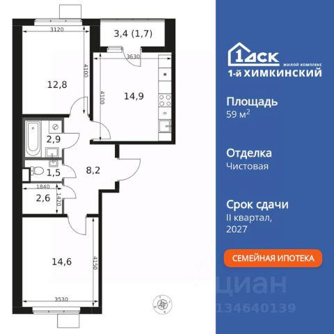 БЕЗ ПЕРВОНАЧАЛЬНОГО ВЗНОСА! ТОЛЬКО 4 ДНЯ ДО 10.02 • Дополнительная скидка 10% • Ставка 10% по стандартной ипотеке для всех без наценок • Ставка 3,5% по семейной ипотеке Успейте купить выгодно! Прямая продажа от застройщика! Жилой Комплекс класса Комфорт. Продаётся 2-к квартира номер 565 общей площадью 43.1 кв.м. на 2-м этаже 16 этажного здания. Отделка Whitebox. Цена с учётом скидки. Особенности квартиры: - Мастер-зона с гардеробной. Просторное место для отдыха и удобного хранения вещей. - Линейная планировка - максимальная функциональность и удобство. - Раздельный санузел - больше удобства для всех членов семьи. - Евроформат - просторное и удобное жилье с отличной планировкой. - Гардеробная - удобство для хранения и организации вещей. - Ниша под шкаф - компактное и удобное место для вещей. - Тёплая лоджия - пространство для отдыха в любое время года. Квартира с предчистовой отделкой (White box). Вам не придется заниматься черновыми и трудоёмкими работы, а чистовую отделку и дизайн - сделайте на свой вкус. Информация о комплексе: Квартал класса комфорт плюс, где современное городское пространство граничит с удивительной природой вокруг. 1-й Химкинский расположен на территории в 102 га и органично вписан в природное окружение Химкинского леса и канала им. Москвы. В проекте предусмотрена богатая коммерческая инфраструктура с собственным торговым центром, общеобразовательные учреждения и социальные объекты. Изюминкой жилого комплекса будут спортивно-оздоровительный комплекс с термами и SPA и семейный парк развлечений. Транспортная доступность: ЖК "1-й Химкинский" дает возможность выбрать любой способ передвижения как до города, так и до самых разных объектов, которые могут представлять интерес для его жителей. Не важно, какой способ передвижения вы предпочитаете, успевать всегда и везде можно вне зависимости от выбора транспорта. - 8 мин. пешком (800 м) до остановки "Золотая Арка" -10 мин пешком (1 км) до остановки "Поворот на Ивакино" Внутренняя инфраструктура: - Безопасность: закрытые дворы без машин, безбарьерная среда и сквозные подъезды, камеры на детских площадках с возможностью трансляции на смартфоне - Идеальный отдых в кругу семьи: семейный парк развлечений на территории, торговый центр (2-х этажный) общей площадью более 8 тыс. кв. м с фудкортом - Образование: 3 детских сада и современная муниципальная школа на 2450 мест - Спортивная среда: закольцованный веломаршрут с навигацией, спортивный комплекс с термами, закрытый тренажерный зал и зоны ворк-аута - Социальные объекты: поликлиника со станцией скорой помощи, пожарное депо - Подземный паркинг и кладовые помещения на -1 этаже, станция техобслуживания и автомойка на территории