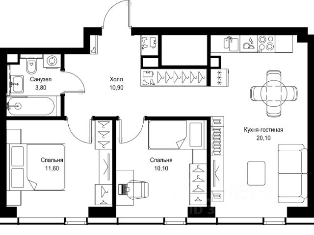 Продается 2-комнатная квартира от застройщика в жилом мультиквартале СИТИДЗЕН на 12-м этаже в корпусе #6. Общая площадь лота составляет 55.60 м² В лобби корпуса #6 представлены: 1. Medium-лобби с зоной отдыха 2. Зона консьержа 3. Почта 4. Колясочная 5. Лапомойка 6. Лифтовой холл 7. Санузел 8. Помещения уборочного инвентаря СИТИДЗЕН — это большой город в миниатюре. Инфраструктура мультиквартала организована по принципу шаговой доступности от подъезда до любой нужной точки: супермаркета, кофейни, салона красоты, фитнес-центра и др. В домах представлены лобби с атмосферой премиального резорта, дизайн которых вдохновлен французскими интерьерами 1960-х годов. Концепция благоустройства территории мультиквартала предусматривает большое количество вечнозеленых растений, что создает ощущение максимальной близости к природе. Жителей квартала ждут места для отдыха, игр, занятий спортом и прогулок с домашними питомцами. В приватном дворе с собственным садом предусмотрена зеленая комьюнити-гостиная для дружеского отдыха и общения, одна из стен которой подходит для кинопроекций, а также зеленый рабочий кабинет в саду (бизнес-гардена), оборудованный wi-fi станцией и usb-разъёмами для зарядки устройств. Маленьких жителей ждут авторские игровые площадки для разных возрастных групп (от 0 до 12 лет). Начало строительства - 1 квартал 2024 года. Окончание строительства - 3 квартал 2027 года.Компания MR предлагает своим клиентам специальные условия приобретения квартир в рамках программ ипотечного кредитования от банков-партнеров.