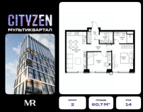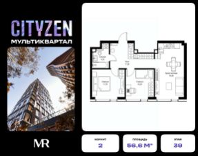 Продается 2-комнатная квартира от застройщика в жилом мультиквартале CITYZEN на 11-м этаже в корпусе #6 урбан-блока VOLNA. Общая площадь лота составляет 55.60 м² В лобби корпуса #6 урбан-блока VOLNA представлены: 1. Medium-лобби с зоной отдыха 2. Зона консьержа 3. Почта 4. Колясочная 5. Лапомойка 6. Лифтовой холл 7. Санузел 8. Помещения уборочного инвентаря CITYZEN — это большой город в миниатюре. Инфраструктура мультиквартала организована по принципу шаговой доступности от подъезда до любой нужной точки: супермаркета, кофейни, салона красоты, фитнес-центра и др. В домах представлены лобби с атмосферой премиального резорта, дизайн которых вдохновлен французскими интерьерами 1960-х годов. Концепция благоустройства территории мультиквартала предусматривает большое количество вечнозеленых растений, что создает ощущение максимальной близости к природе. Жителей квартала ждут места для отдыха, игр, занятий спортом и прогулок с домашними питомцами. В приватном дворе с собственным садом предусмотрена зеленая комьюнити-гостиная для дружеского отдыха и общения, одна из стен которой подходит для кинопроекций, а также зеленый рабочий кабинет в саду (бизнес-гардена), оборудованный wi-fi станцией и usb-разъёмами для зарядки устройств. Маленьких жителей ждут авторские игровые площадки для разных возрастных групп (от 0 до 12 лет). Начало строительства - 1 квартал 2024 года. Окончание строительства - 3 квартал 2027 года.Компания MR предлагает своим клиентам специальные условия приобретения квартир в рамках программ ипотечного кредитования от банков-партнеров.