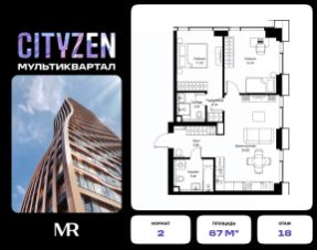 Продается 2-комнатная квартира от застройщика в жилом мультиквартале CITYZEN на 21-м этаже в корпусе #6 урбан-блока VOLNA. Общая площадь лота составляет 54.50 м² В лобби корпуса #6 урбан-блока VOLNA представлены: 1. Medium-лобби с зоной отдыха 2. Зона консьержа 3. Почта 4. Колясочная 5. Лапомойка 6. Лифтовой холл 7. Санузел 8. Помещения уборочного инвентаря CITYZEN — это большой город в миниатюре. Инфраструктура мультиквартала организована по принципу шаговой доступности от подъезда до любой нужной точки: супермаркета, кофейни, салона красоты, фитнес-центра и др. В домах представлены лобби с атмосферой премиального резорта, дизайн которых вдохновлен французскими интерьерами 1960-х годов. Концепция благоустройства территории мультиквартала предусматривает большое количество вечнозеленых растений, что создает ощущение максимальной близости к природе. Жителей квартала ждут места для отдыха, игр, занятий спортом и прогулок с домашними питомцами. В приватном дворе с собственным садом предусмотрена зеленая комьюнити-гостиная для дружеского отдыха и общения, одна из стен которой подходит для кинопроекций, а также зеленый рабочий кабинет в саду (бизнес-гардена), оборудованный wi-fi станцией и usb-разъёмами для зарядки устройств. Маленьких жителей ждут авторские игровые площадки для разных возрастных групп (от 0 до 12 лет). Начало строительства - 1 квартал 2024 года. Окончание строительства - 3 квартал 2027 года.Компания MR предлагает своим клиентам специальные условия приобретения квартир в рамках программ ипотечного кредитования от банков-партнеров.