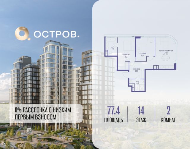 Продаётся 2-комн. квартира от застройщика: общая площадь 70.20 м², жилая 29.50 м², кухня 22.20 м², 14-й этаж, жилой квартал "Остров 14", корпус 6 (секция 1). Срок сдачи: 2 квартал 2029 года. 2 совмещенных санузла. Остров.14 ДОХОДНЫЙ ДОМ - ЧАСТЬ ПРОЕКТА "ОСТРОВ", В 10 МИНУТАХ ОТ МОСКВА-СИТИ, В 15 МИНУТАХ ЕЗДЫ ОТ САДОВОГО КОЛЬЦА. Квартиры для сдачи в аренду Инвестиционный продукт для получения постоянного дохода Квартиры с отделкой и мебелью, и с управлением "под ключ" Постоянный доход для инвесторов, отельный сервис для арендаторов Востребованные для аренды планировки: студии, 1- и 2-комнатные квартиры 28-64 м2 Полная комплектация квартир: отделка, мебель, бытовая техника, кондиционеры Постоянный поток арендаторов - 10 минут от Москва-Сити, 5 минут от метро "Мневники", самодостаточная инфраструктура в квартале и собственная клубная инфраструктура в доме, спортивный, рекреационный и деловой кластеры на территории ОСТРОВА
