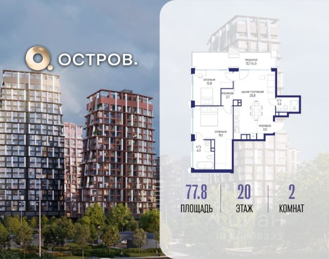 Продаётся 2-комн. квартира от застройщика: общая площадь 65.70 м², жилая 31.60 м², кухня 20.40 м², 8-й этаж, жилой квартал "Остров 14", корпус 6 (секция 1). Срок сдачи: 2 квартал 2029 года. 2 совмещенных санузла. Остров.14 ДОХОДНЫЙ ДОМ - ЧАСТЬ ПРОЕКТА "ОСТРОВ", В 10 МИНУТАХ ОТ МОСКВА-СИТИ, В 15 МИНУТАХ ЕЗДЫ ОТ САДОВОГО КОЛЬЦА. Квартиры с отделкой и мебелью, и с управлением "под ключ" Постоянный доход для инвесторов, отельный сервис для арендаторов Востребованные для аренды планировки: студии, 1- и 2-комнатные квартиры 28-64 м2 Полная комплектация квартир: отделка, мебель, бытовая техника, кондиционеры Постоянный поток арендаторов - 10 минут от Москва-Сити, 5 минут от метро "Мневники", самодостаточная инфраструктура в квартале и собственная клубная инфраструктура в доме, спортивный, рекреационный и деловой кластеры на территории ОСТРОВА