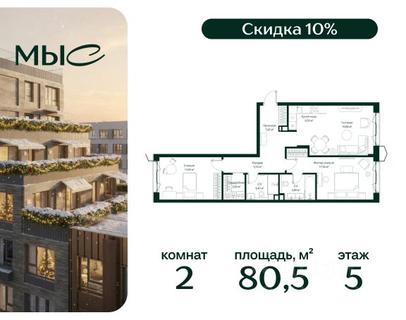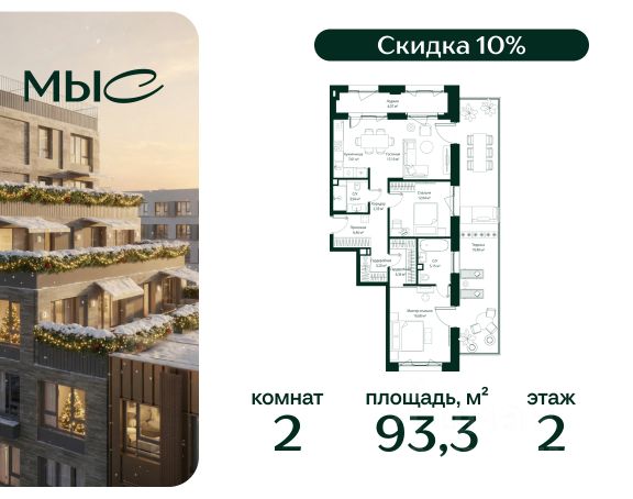 Прямая продажа от застройщика. Продаётся 2-комнатная квартира общей площадью 89.58 м² без отделки в премиальном жилом комплексе "МЫС" на 2-м этаже 12 этажного дома. Квартира расположена в корпусе "Волга". Проект МЫС — это, прежде всего, идеальное место для семей. В рамках проекта построят государственную школу, два детских сада и дворец спорта площадью 20 000 м2 с термальным комплексом, выплывным бассейном, фитнес-залом, теннисными, сквош и падел кортами и секциями для детей. На территории площадью, сравнимой с тремя парками Зарядье, появятся кафе и рестораны, пруд с набережной, спортивные и детские площадки, скейт-парк, лыжные и веломаршруты. Расположение: - 2 минуты до скоростной трассы М1 и Минского шоссе; - 10 минут до МКАД; - 15 минут до МЦД Лесной Городок - 20 минут до делового центра "Москва-Сити"; - 28 минут до аэропорта "Внуково". Благоустройство: - велосипедные и лыжные маршруты; - собственная набережная и парк; - лаунж-зоны в окружении природы; - беседки у очага; - дворец спорта площадью 20 000 м²; - термальный комплекс с тремя бассейнами; - 4 теннисных и падел-корта; - 6 сквош-кортов; - многофункциональный спортзал; - скейт-парк; - просторная площадь для прогулок с фонтаном; - детский клуб с творческими секциями; - гастро-доминанта; - кафе у пруда, рестораны, ритейл. Окружение - соседство с лесным фондом; - школа на 1250 мест и 2 детских сада на 350 и 255 мест; - Дубковский и Подушкинский леса, парк "Рассказовка", Мещерский парк. Действуют специальные условия при 100% оплате, подробности уточняйте у менеджера в офисе продаж.