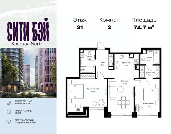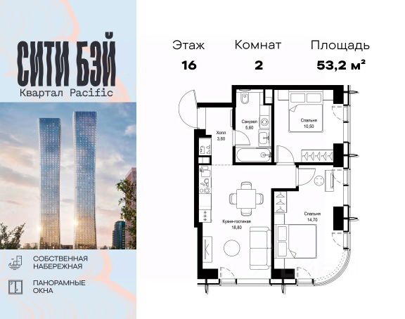 Продаётся 2-комнатная квартира 53 м². В жилом районе Алиа на 7-м этаже 28-этажного дома. Жилой район Алиа — это дома бизнес-класса у слияния Москвы-реки и Сходни. Алиа находится в Покровском-Стрешневе, экологически чистом районе на престижном северо-западе столицы. Район возводится на бывшей территории Тушинского аэрополя, где никогда не было промышленного производства. Алиа — это район разностороннего развития, спроектированный по принципу WORK.LIVE.PLAY.LEARN. Это "15-минутный город", где вся необходимая для комфортной жизни инфраструктура — на расстоянии приятной прогулки. У района удобное расположение: отсюда меньше 10 минут пешком до станций метро "Спартак" и "Тушинская" и всего полчаса на автомобиле до центра города или аэропорта Шереметьево. Архитектурную концепцию Алиа разработало бюро SOM (Skidmore, Owings & Merrill), авторы знаменитой "Бурдж-Халифа". В Алиа больше 140 планировочных решений, среди которых — редкие для Москвы форматы: квартиры с окном в ванной, пентхаус, сити-юниты и таунхаусы. Почти половина территории района отдана под благоустройство. В Алиа три парка: Линейный парк с кафе и магазинами, Центральный парк с амфитеатром, сухим фонтаном и большим плейхабом для детей всех возрастов и Прибрежный парк на собственной набережной, одной из самых длинных в Москве. В каждом урбан-блоке — закрытый внутренний двор с гипоаллергенными растениями и детской площадкой. В лобби каждого жилого корпуса в Алиа оборудована зона ожидания, колясочная, гостевой санузел и лапомойка для домашних животных. За стойкой ресепшена резидентов и их гостей встречает консьерж. Центральное лобби урбан-блока — это стильное общественное пространство с коворкингом, лаундж-зоной и кофе-пойнтом. Это "вторая гостиная" жителей урбан-блока и одно из мест, где формируется комьюнити Алиа. Два ключевых объекта инфраструктуры в Алиа — это спорткомплекс "Чкалов Арена", где представлены 25 видов спорта, и самый большой в стране бизнес-парк класса A, благодаря которому району обеспечено быстрое развитие.