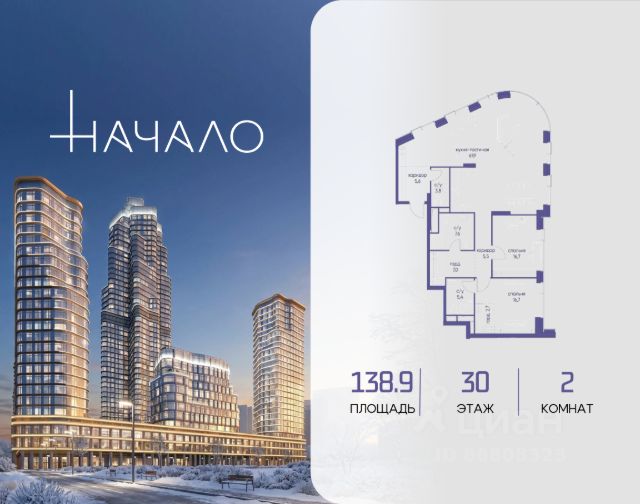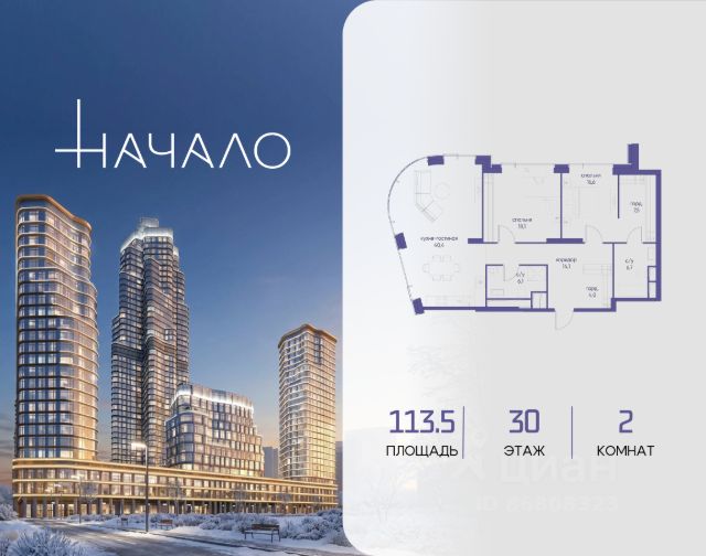 В престижном районе Пресня, на перекрестке делового и исторического центров Москвы, продается двухкомнатная квартира площадью 90.10 кв. м без отделки. Квартира находится на 6 этаже 11-этажного дома, в новом элитном жилом комплексе "Начало" от девелопера "Донстрой". Реализация проекта запланирована на 1 квартал 2030 года. Начало - футуристический дом на Пресне в нескольких минутах от Сити и Садового кольца. Проект по-настоящему космического масштаба, где есть все, чтобы раскрыть себя и свои возможности. Расположение Пресня - один из самых престижных районов Москвы. Жить здесь - значит стать частью истории столицы, быть в эпицентре деловой активности города и ощущать, как сама Вселенная вращается вокруг вас. - 5 минут пешком до Красногвардейских прудов; - 15 минут пешком до ст. метро "Улица 1905 года"; - 6 минут на автомобиле до Садового кольца и небоскрёбов "Москва-Сити"; - 12 минут на автомобиле до Кремля. Архитектура как путешествие Как росток пробивает скалу, как растет кристалл, как ракета устремляется ввысь - так формируется архитектурный образ этого дома. Точно выверенный баланс между футуристичными формами и функциональным содержанием дома выводит жизнь в нем на новую орбиту. Стеклянные фасады отражают небо и город, превращая здание в зеркало для окружающего ландшафта. Двор между небом и землёй Просторная территория двора с тремя тематическими зонами отдыха: "Млечный путь" - для детских игр и развлечений; "Космический сад" - для тихого отдыха и релакса; "Метеоритный сад" - для любителей спорта. Открытый променад - сквозной маршрут на крыше стилобата с зонами отдыха, занятий спортом, детских игр и совместной работы. Все площадки плавно связаны между собой прогулочной дорожкой. Теплая кольцевая галерея и мосты над пространством двора - все корпуса "стыкуются", точно модули космической станции. Главный центр притяжения В составе проекта возводится собственный комьюнити-центр, где создана идеальная атмосфера для любых начинаний: - Детский клуб для будущих покорителей Вселенной; - Коворкинги для решения задач планетарного и космического масштабов; - Переговорные для судьбоносных и просто важных встреч; - Лаунжи с атмосферой дзена и релакса; - Библиотека для спокойного чтения; - Кинотеатр для классики и блокбастеров. Территория комфорта и приватности Всё нужное рядом: - Современный образовательный центр со школой и детским садом - для ваших детей; - Фитнес-центр с бассейном - для релакса и борьбы со стрессом; - Ресторанная улица: кафе, рестораны, летние террасы - для деловых обедов и семейных ужинов; - Пекарня и минимаркет в доме - для ежедневных покупок; - Сквер у дома - для неспешных прогулок и спокойного отдыха; - Никаких такси на улице. Машина заберет вас прямо в подземном паркинге вашего корпуса.