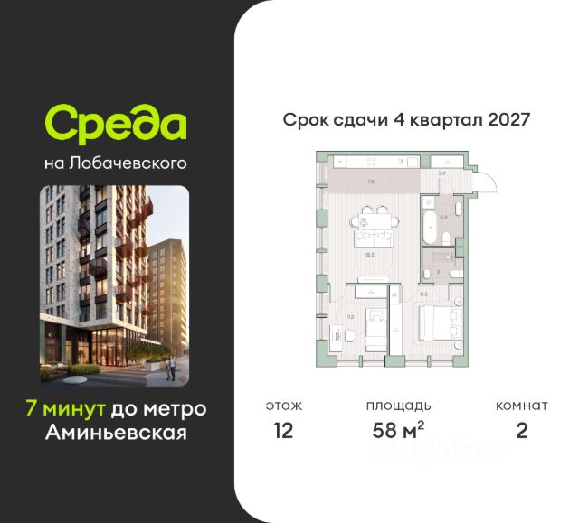 О квартире Продаётся 2-комнатная квартира общей площадью 55.5 кв.м. без отделки. Квартира расположена на 8 этаже корпуса 5.6 в жилом комплексе бизнес-класса "Среда на Лобачевского" в пешей доступности от метро "Аминьевская". О жилом комплексе "Среда на Лобачевского" полностью соответствует критериям современного жилого пространства. Взяв за основу рациональный подход, мы гармонично соединили дизайн, актуальные тренды и функциональность. Продуманный современный экстерьер и функциональные планировки внутри, приватные пространства и разнообразные досуговые зоны для каждого члена семьи — все это "Среда на Лобачевского". Инфраструктура Район отлично развит и наполнен жизнью, здесь уже есть вся необходимая инфраструктура — детские сады, школы, медучреждения, торговые центры, благоустроены парки для прогулок и отдыха, удобен и легкодоступен городской транспорт. Рядом расположены учебные корпуса крупных университетов — МГУ, МГИМО и РАНХиГС. Школы и детские сады в районе занимают высокие позиции в городских рейтингах, поэтому вам не придется беспокоиться о качестве образования детей. Как и об отдыхе: поблизости расположены живописные пруды, реки и парки. Это Парк Олимпийской деревни, Парк имени 50-летия Октября, Мещерский парк и Очаковские пруды. Теперь поставить галочки в еженедельном чек-листе "спорт-прогулки-встречи с друзьями" можно, не покидая любимый район. Особенности Особое внимание в проекте уделяется созданию функциональных пространств не только внутри дома, но и за его пределами. В ландшафтном парке "Среды на Лобачевского" расположены крытые зоны для спокойного времяпровождения, места для активного отдыха и спорта, коворкинг, соседский комьюнити-центр, водные объекты. —Ландшафтный парк во дворе. —Водный сад с зонами отдыха. —Зоны коворкинга. —Дизайнерские гранд-лобби. —Бесключевой доступ. —Подземный паркинг. 2-комнатная квартира в ипотеку в новостройке в районе Очаково-Матвеевское в Москве.