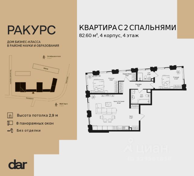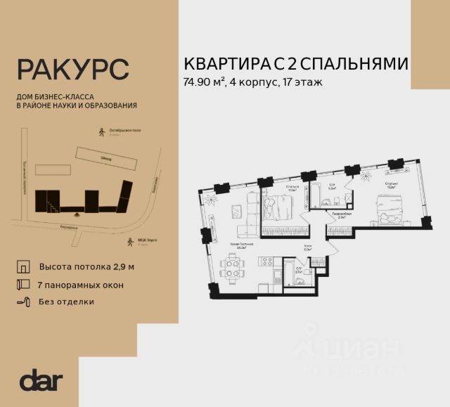 Стоимость указана с учетом скидки 5%, ваша выгода составит 2 174 949 рублей! Полная стоимость квартиры без скидки 43 498 980 рублей. В продаже 2-комнатная квартира в готовом клубном доме бизнес-класса "Интонация". Квартира с высокими потолками, просторной кухней и постирочной. Условия покупки: - выгода до 2,2 млн - семейная ипотека - рассрочка на 6 месяцев - Trade-in "Интонация" состоит из двух 21-этажных корпусов и приватной внутренней территории. На стилобате расположен ландшафтный сад с авторским благоустройством. В продаже финальный пул квартир бизнес-класса с мастер-спальнями, возможностью установки камина, окнами в ванных комнатах, увеличенной высотой потолков, а также просторными террасами и лоджиями. "Интонация" расположена в экологичном районе Щукино на северо-западе Москвы. Вокруг Щукинский лесопарк, Всехсвятская роща и парк "Покровское-Стрешнево". Одно из главных преимуществ дома - сочетание близости к природе и развитой инфраструктуры: - до метро "Щукинская" - 10 минут пешком - до центра - 10 минут на автомобиле Рядом детские сады и школы, включая знаменитую Курчатовскую. Недалеко расположены корпуса Финансового университета и других ведущих вузов. В пешей доступности - поликлиники, супермаркеты, фитнес-центры и спортивные секции. Собственная инфраструктура "Интонации" - ресторан итальянской кухни, студия фитнеса и пилатеса, супермаркеты, один из которых круглосуточный, салон красоты, барбершоп и химчистка. Приватная территория "Интонации" разделена на две тематические зоны: внутренний двор с детскими и спортивными площадками и ландшафтный сад на террасе. Главным акцентом стал парящий водоем с подвижной гладью. Двухуровневый паркинг рассчитан на 186 автомобилей и 27 гостевых мест. Есть возможность зарядки электромобилей, удобный подъезд для грузового транспорта, келлеры для хранения личных вещей и помещение для велосипедов. Купить 2-комнатную квартиру в ипотеку в новостройке в районе Щукино в Москве.