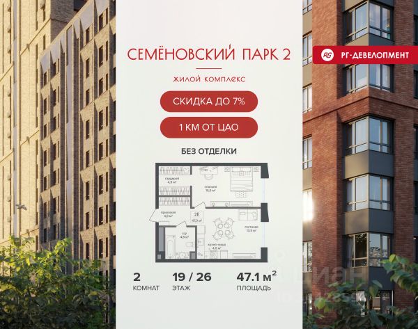Ипотека для каждого! Полная стоимость кредита от 12,380% до 18,537%. Ставка от 0,11% в АО "Альфа-Банк", ген. лицензия ЦБ РФ 1326 от 16.01.2015. Ставка фиксируется на первые 12 месяцев, далее полная стоимость кредита от 22,022% до 24,599% ставка 21,59%. Первоначальный взнос — от 20,1% от стоимости квартиры. Срок кредитования — от 4 до 30 лет. Ипотека на весь срок! Полная стоимость кредита от 23,396% до 26,058% со ставкой 14,5%! Первоначальный взнос —от 20,01% от стоимости квартиры. Срок кредитования — от 3 до 30 лет. АО "Банк ДОМ.РФ" универсальная лицензия Банка России 2312 от 19.12.2018. Скидка 7% при покупке квартиры! Цена указана с учетом максимального размера скидки. Продается 2-к квартира 54,3 кв.м. в ЖК "Семеновский парк 2" на 11-м этаже 25 этажного дома. Компания "РГ-Девелопмент" предоставляет скидку на квартиры в жилом комплексе. Акция действительна до 15.04.2026 включительно. Чтобы воспользоваться предложением, необходимо подписать договор на приобретение недвижимости до 15.04.2026 включительно. Компания "РГ-Девелопмент" вошла в ТОП-10 девелоперов по объёму введённого жилья в "Старой Москве" по итогам 2025 года. Прямая продажа от застройщика! Квартиры без отделки. Срок сдачи корпуса - 1 кв. 2026 г., корпус сдан. Выдача ключей. ЖК "Семеновский парк 2" - это идеальное место для того, чтобы стать вашим домом. Проект расположен в исторической части Москвы вблизи Измайловского лесопарка, в 1 км от ЦАО. 4 станции метро отделяют вас от Красной площади и 15 минут на автомобиле - от Садового кольца. Продам 2-комнатную квартиру в ипотеку в новостройке в районе Соколиная гора в Москве.